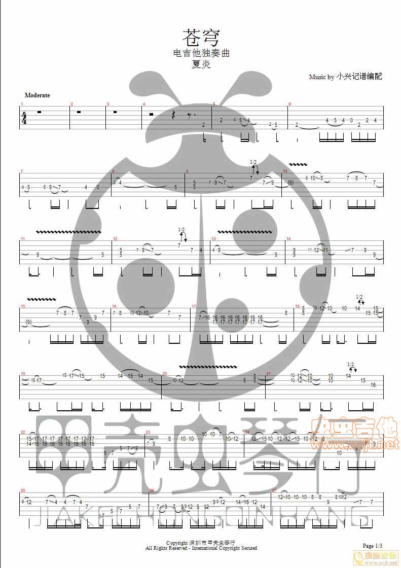 曲谱介绍: 夏炎《苍穹》吉他独奏谱,共有3张高清图谱。
