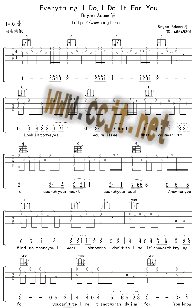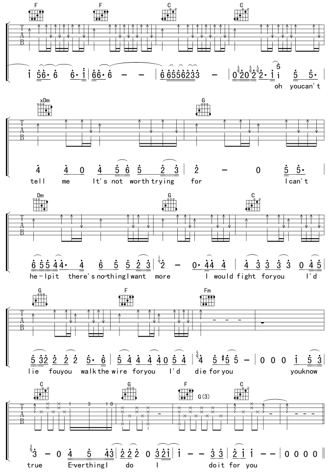 当前位置:琴谱网>吉他弹唱>Everything I do I do for you