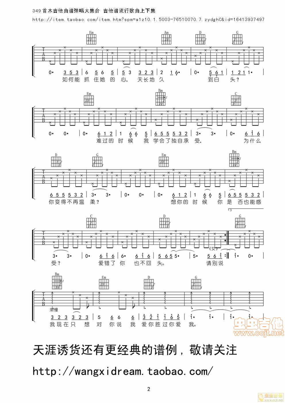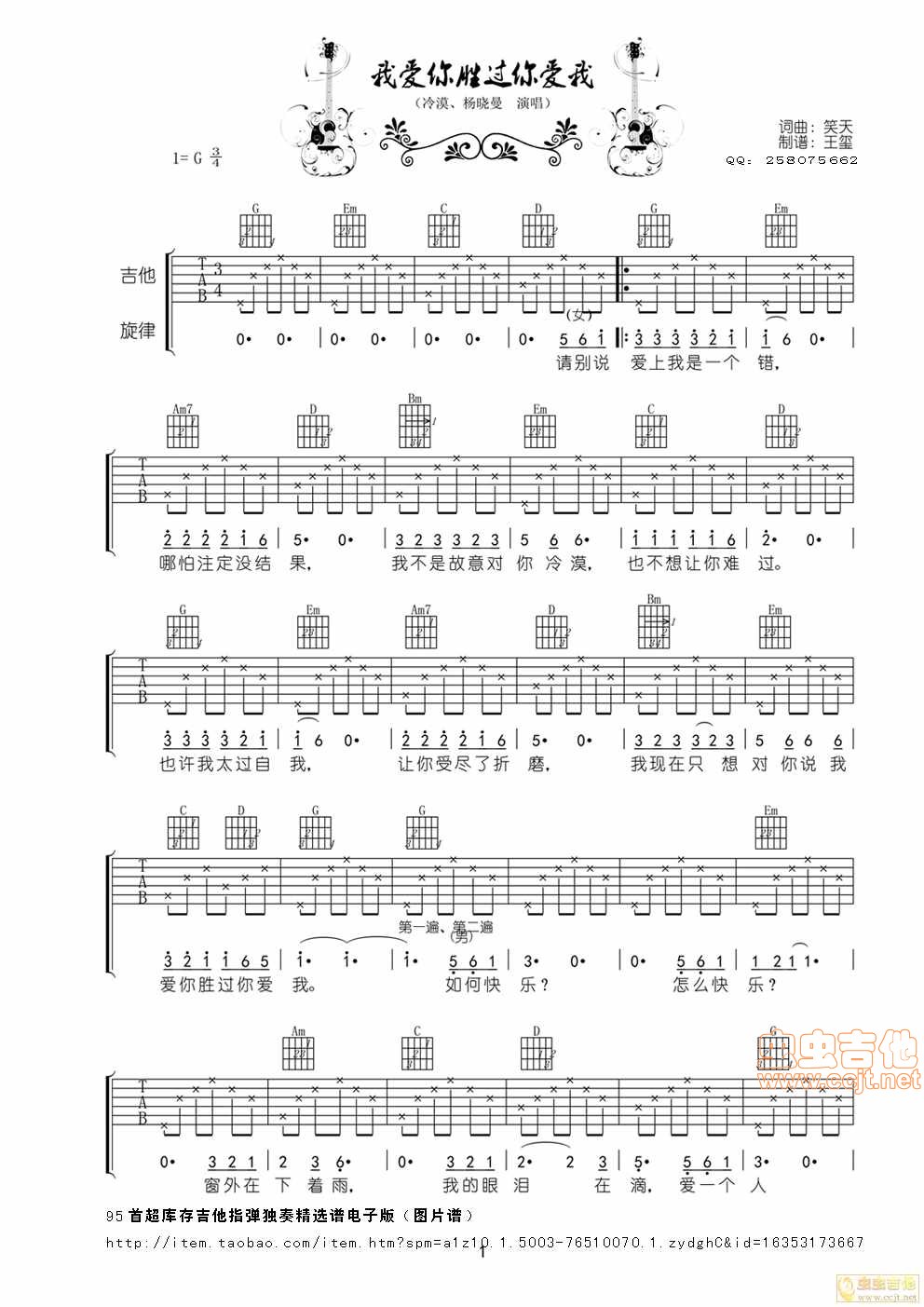 我爱你胜过你爱我吉他谱 - 吉他弹唱谱