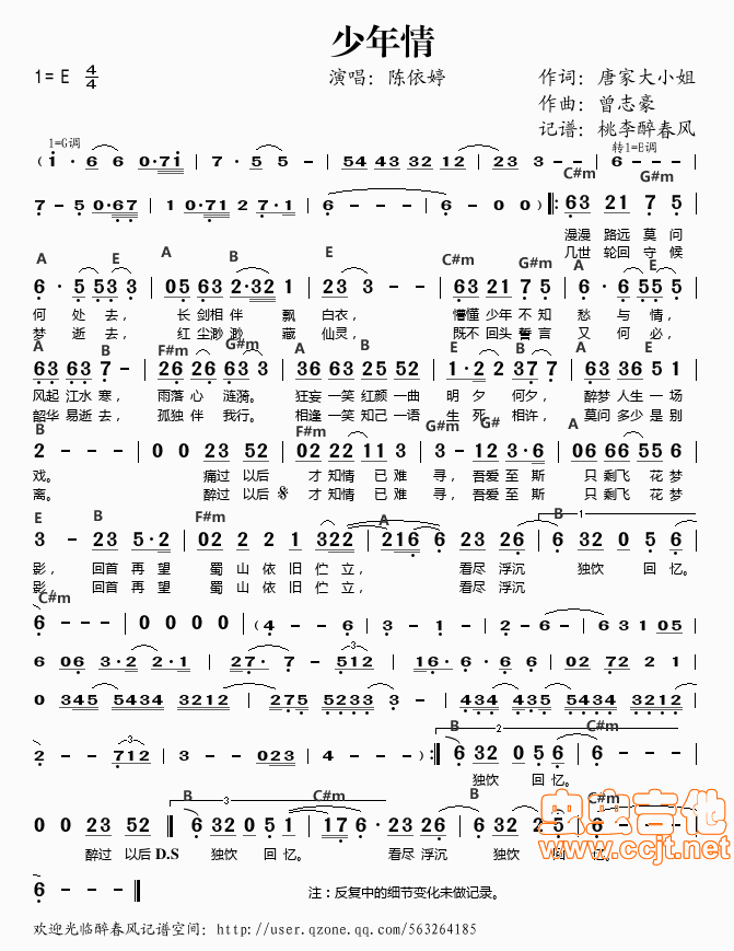 仙剑5 主题曲少年情吉他谱 - 仙剑5 - 吉他弹唱谱