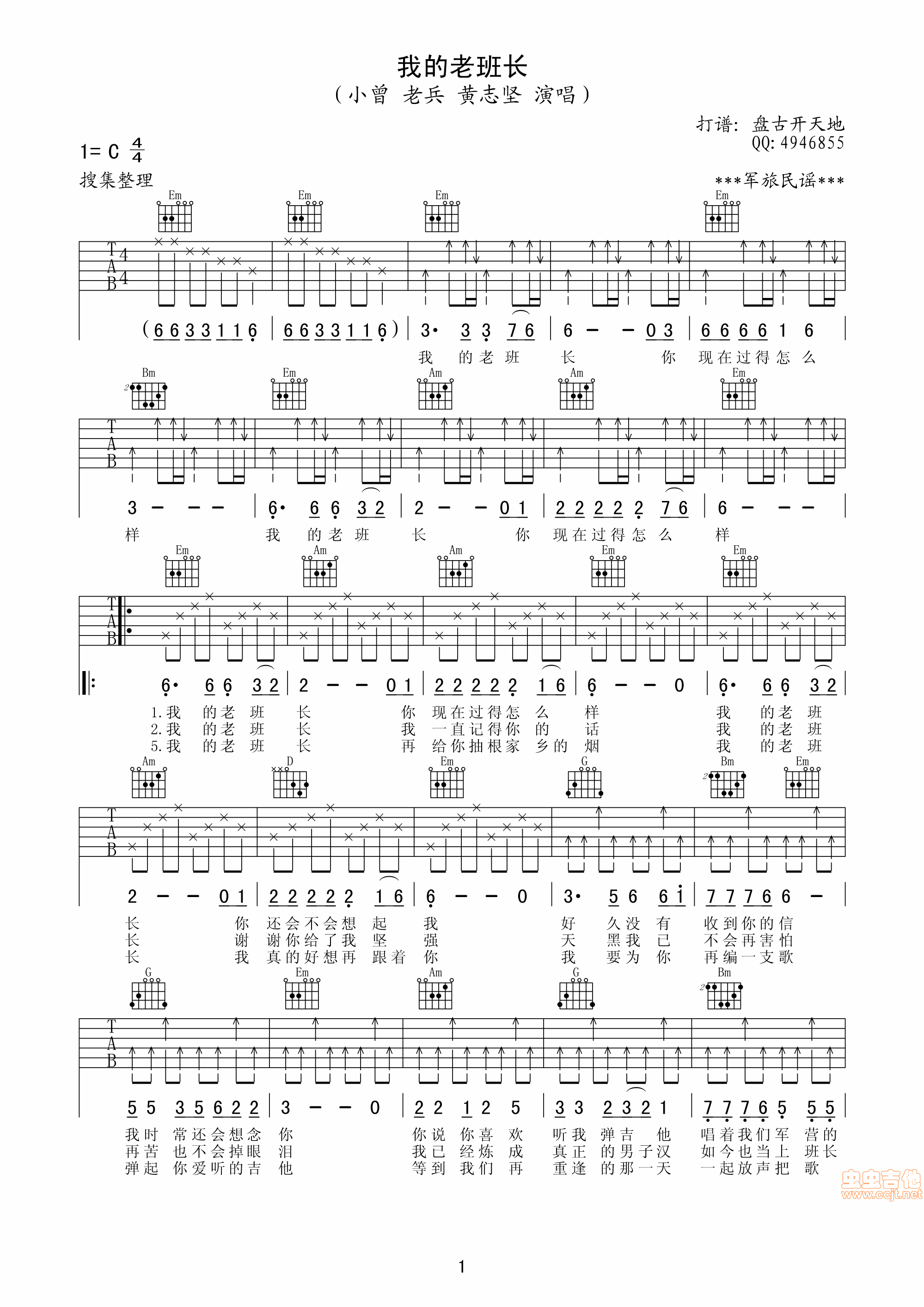 当前位置:琴谱网>吉他弹唱>我的老班长