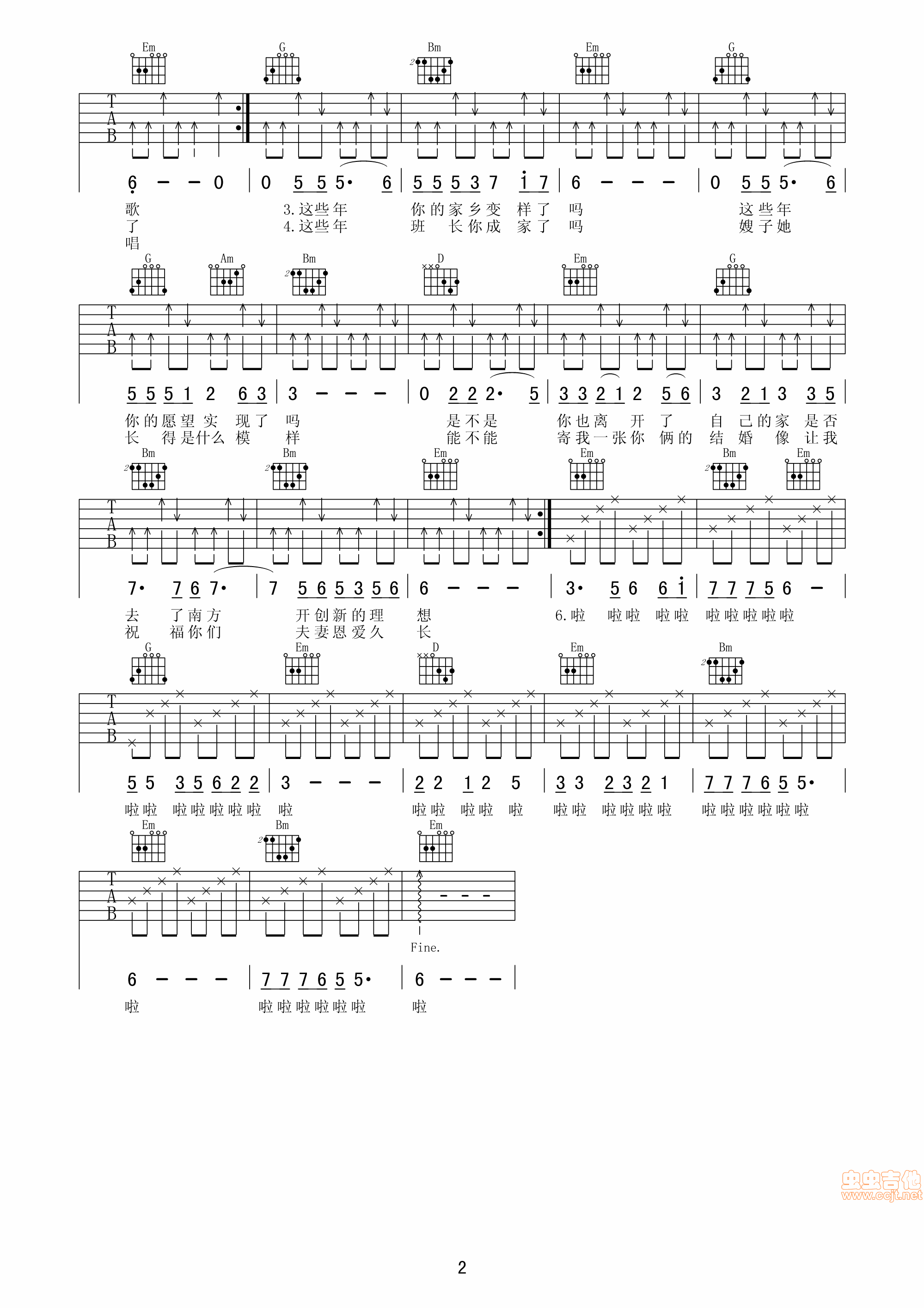 曲谱介绍: 《我的老班长》吉他弹唱谱,共有2张高清图谱,免翻页排版设计。