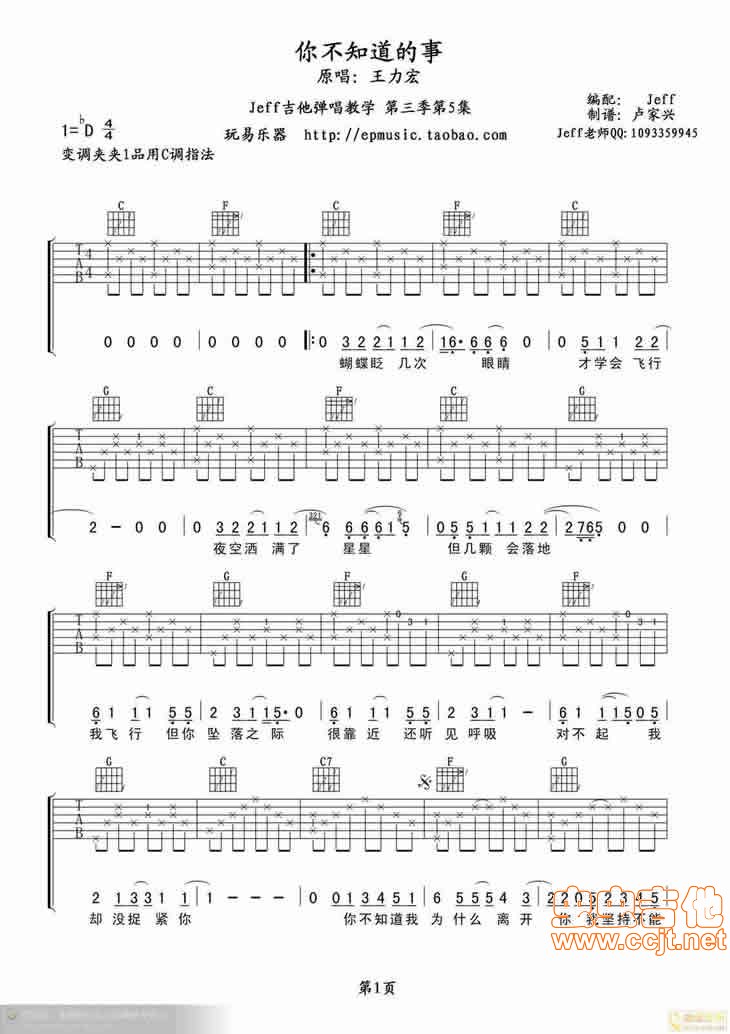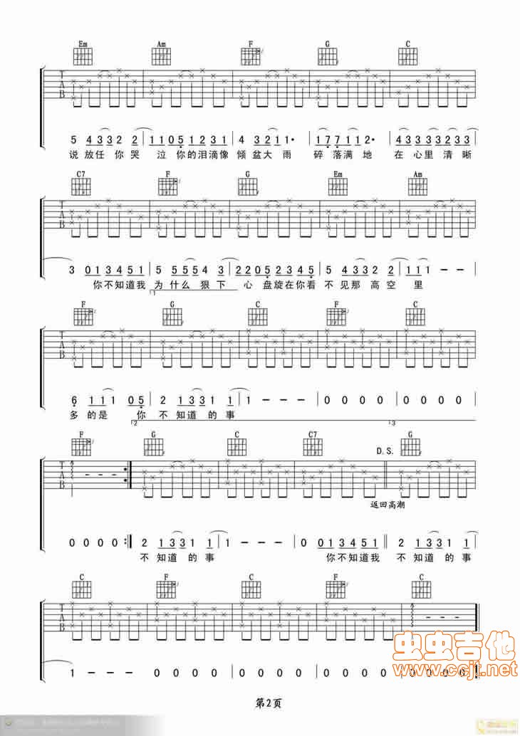 曲谱介绍: 《你不知道的事》吉他弹唱谱,共有2张高清图谱,免翻页排版设计。