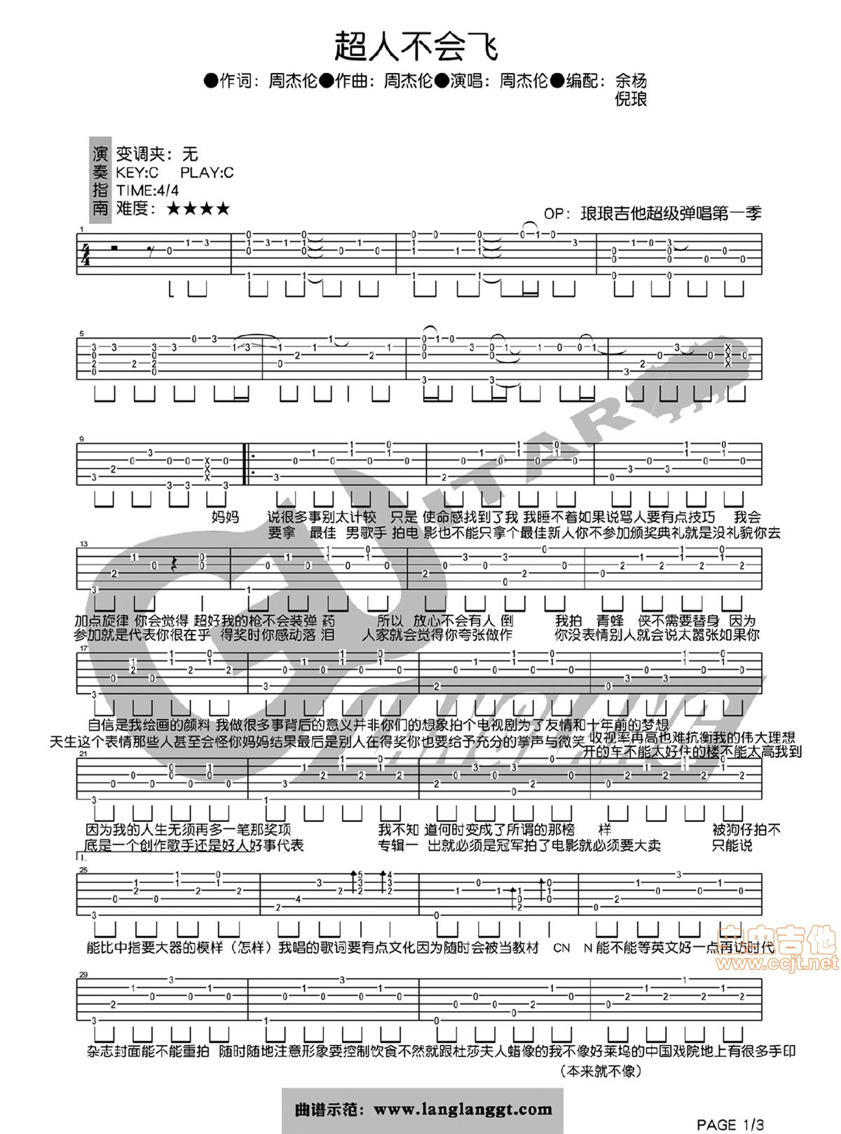 当前位置:琴谱网>吉他弹唱>超人不会飞
