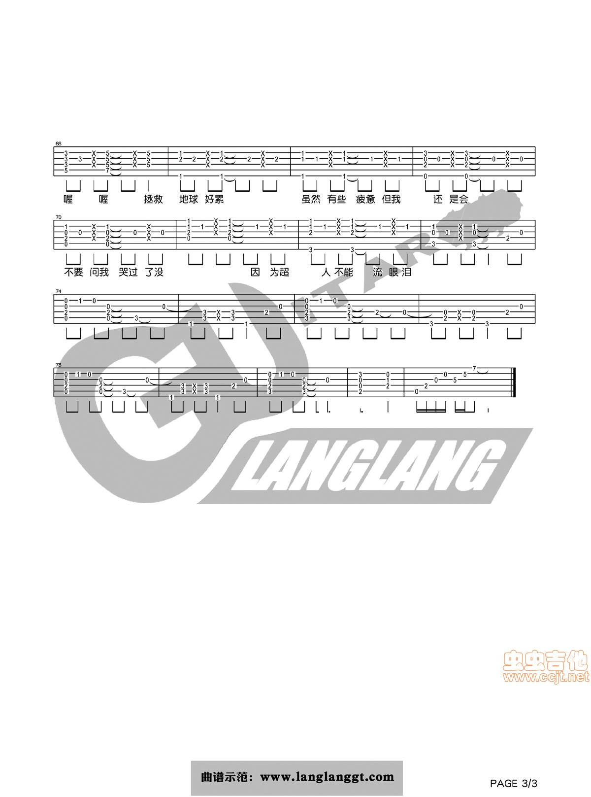 曲谱介绍: |||周杰伦《超人不会飞》吉他弹唱谱原版,共有3张高清图谱。