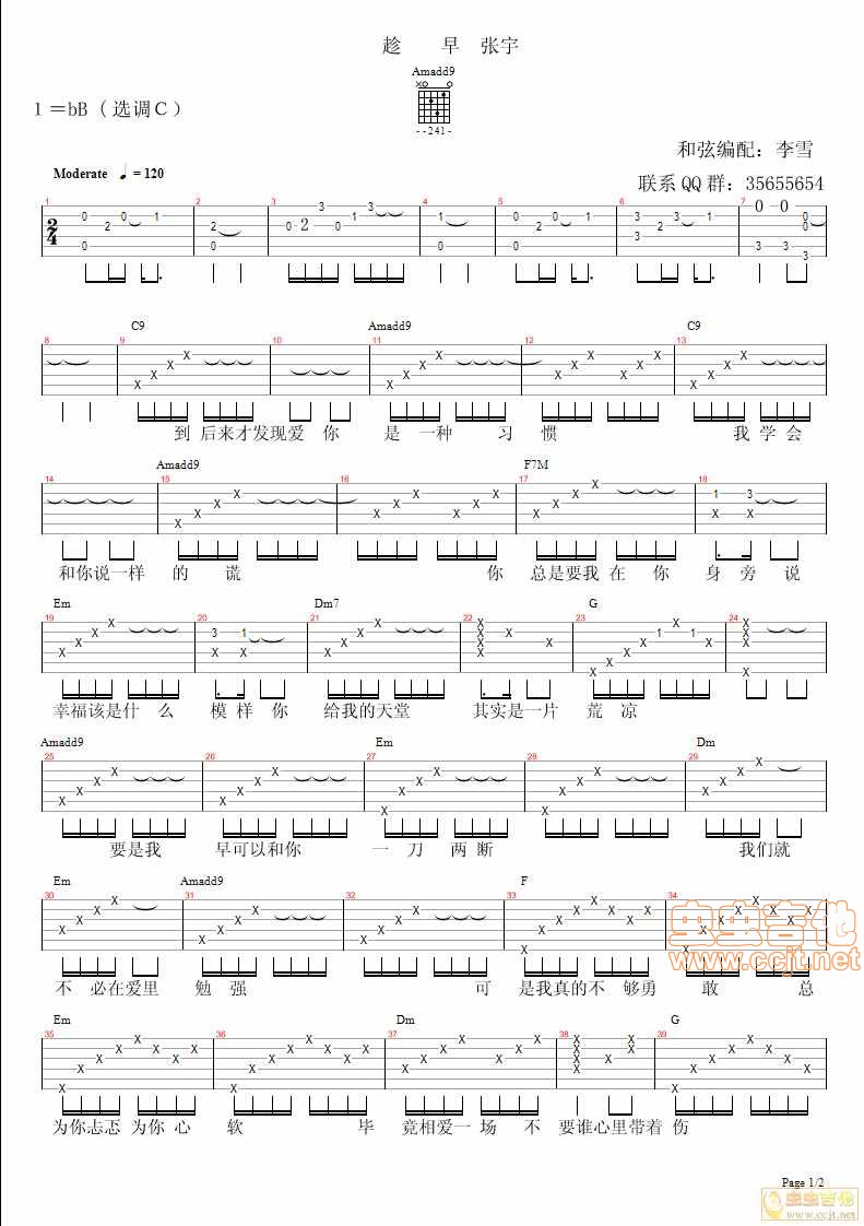 趁早 张宇 李雪吉他音乐吉他谱 - 趁早 - 吉他弹唱谱