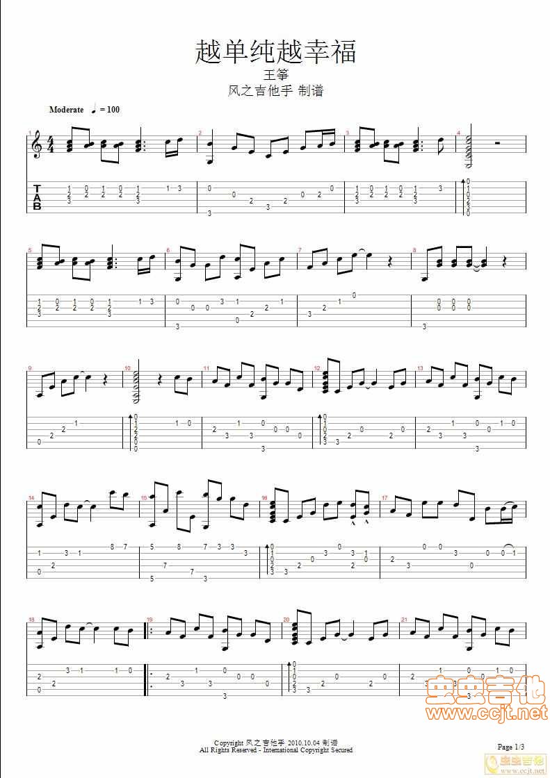 越单纯越幸福吉他谱 - 风之吉他手 - 吉他弹唱谱