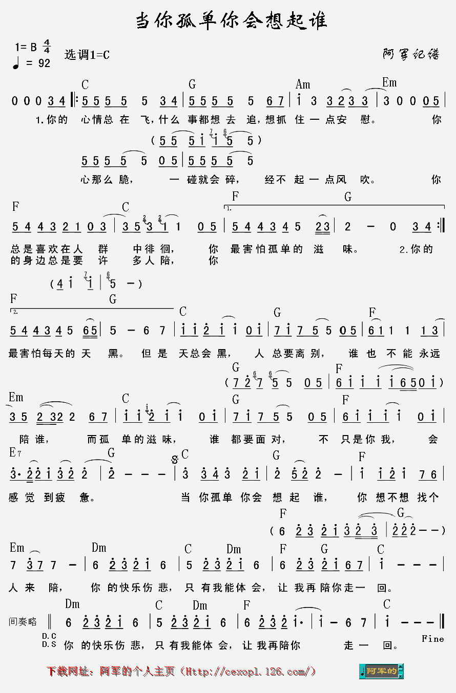 当你孤单你会想起谁吉他谱 - 吉他弹唱谱
