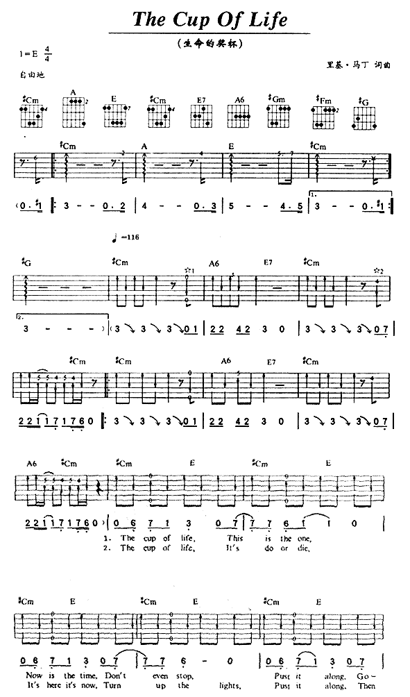 The Cup Of Life吉他谱 - The - 吉他弹唱谱