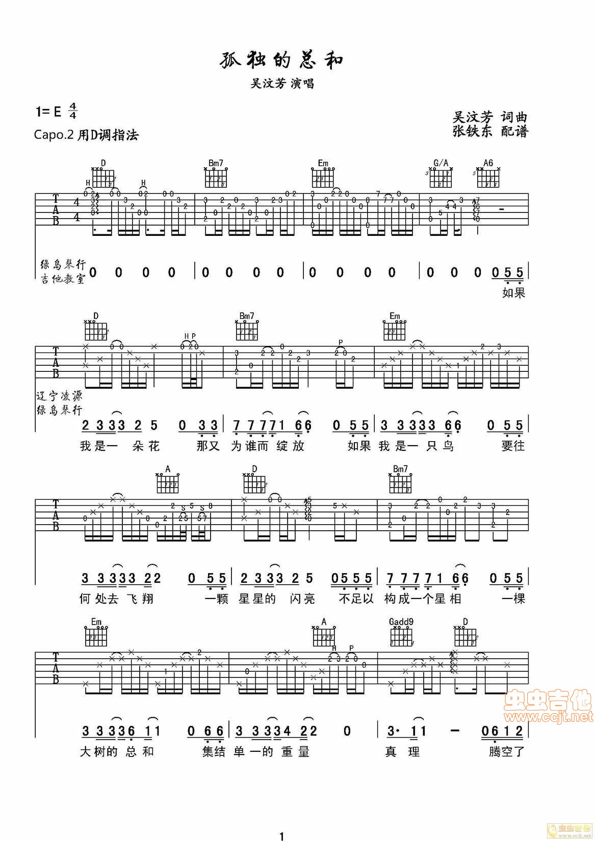 曲谱介绍: 《孤独的总和》吉他弹唱谱,共有2张高清图谱,免翻页排版设计。