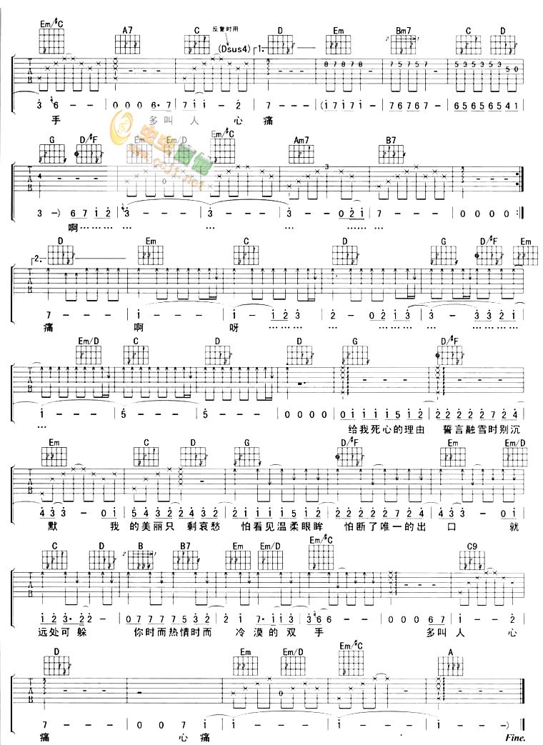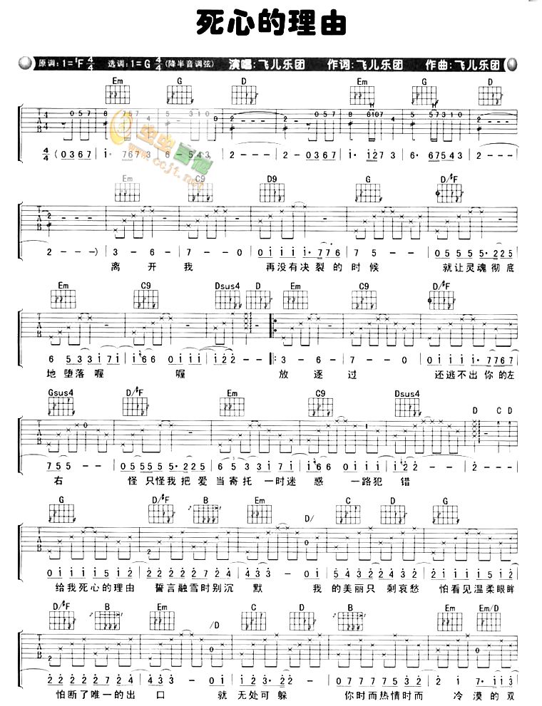 当前位置:琴谱网>吉他弹唱>死心的理由
