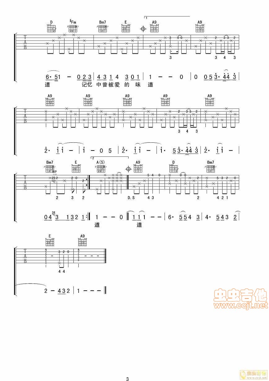 曲谱介绍: 辛晓琪《味道》吉他弹唱谱,共有3张高清图谱。