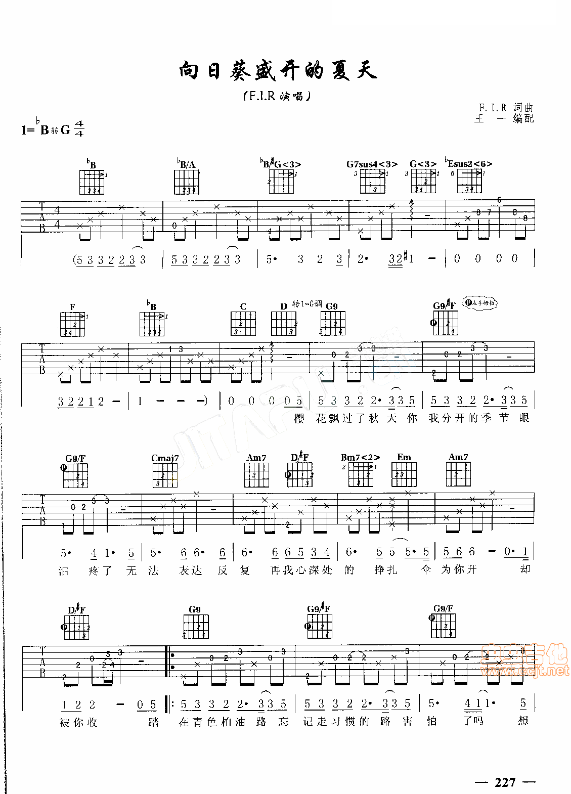 向日葵盛开的夏天吉他谱 - 向日葵盛开的夏天 - 吉他弹唱谱