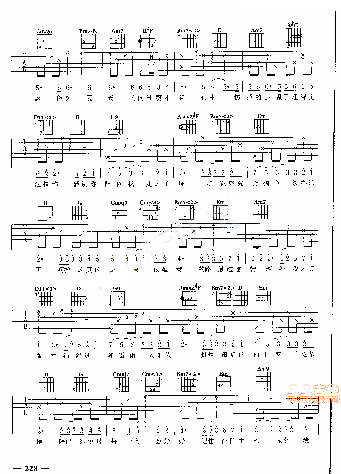 曲谱介绍: 向日葵盛开的夏天《向日葵盛开的夏天》吉他弹唱谱,共有3张高清图谱。