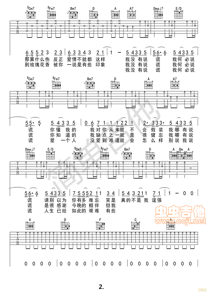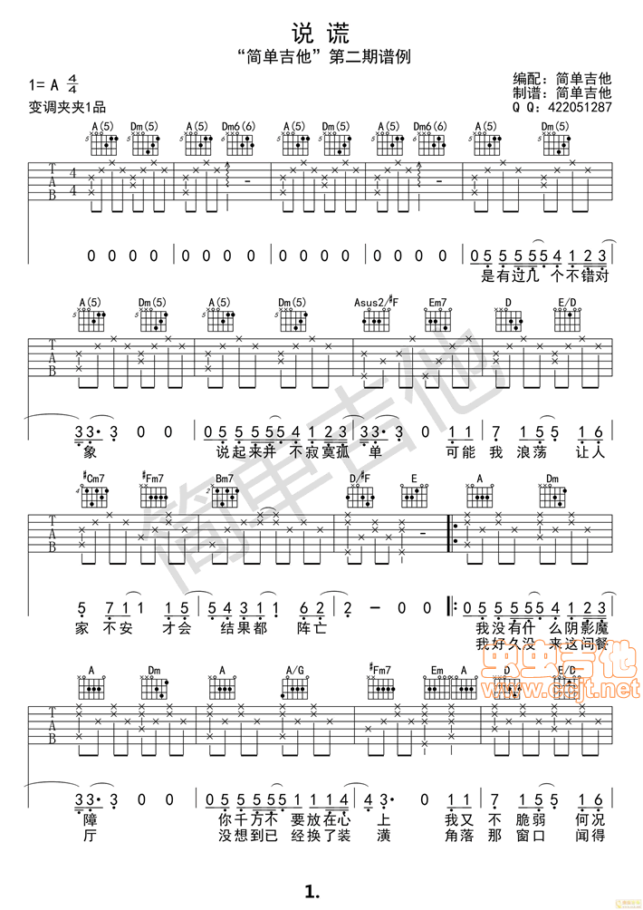 说谎吉他谱 - 吉他弹唱谱