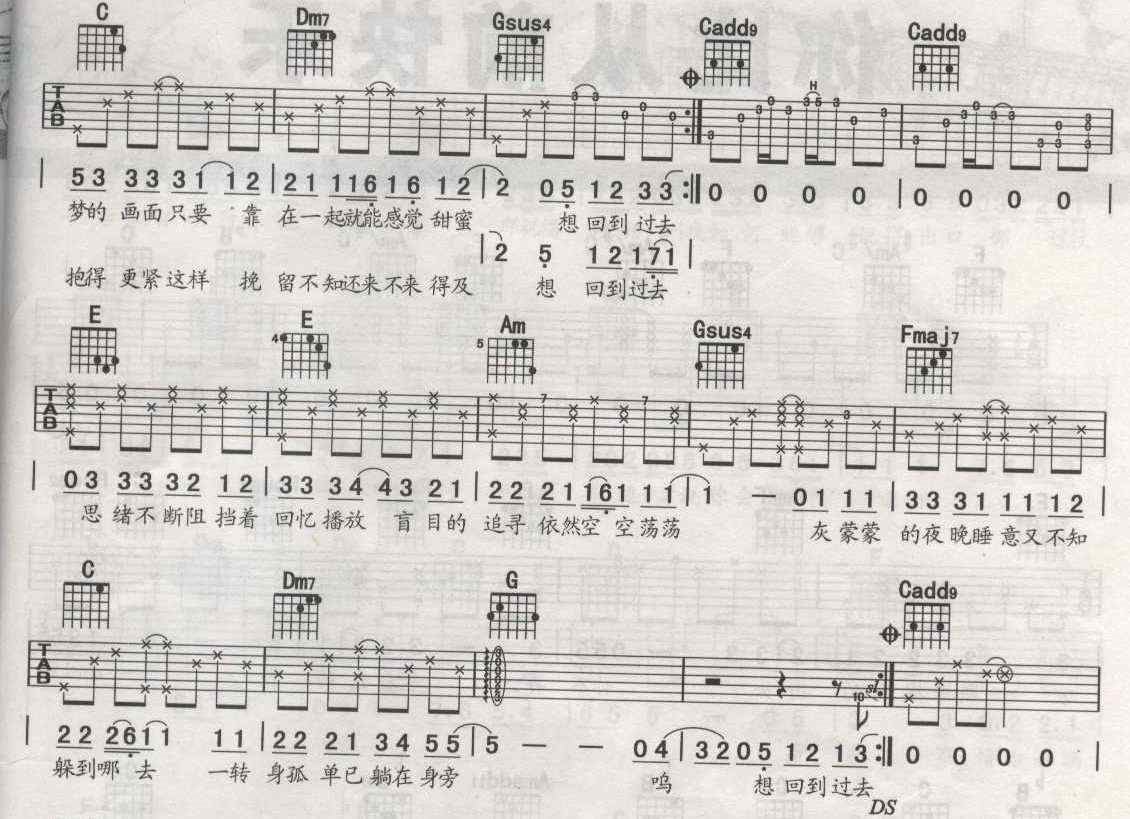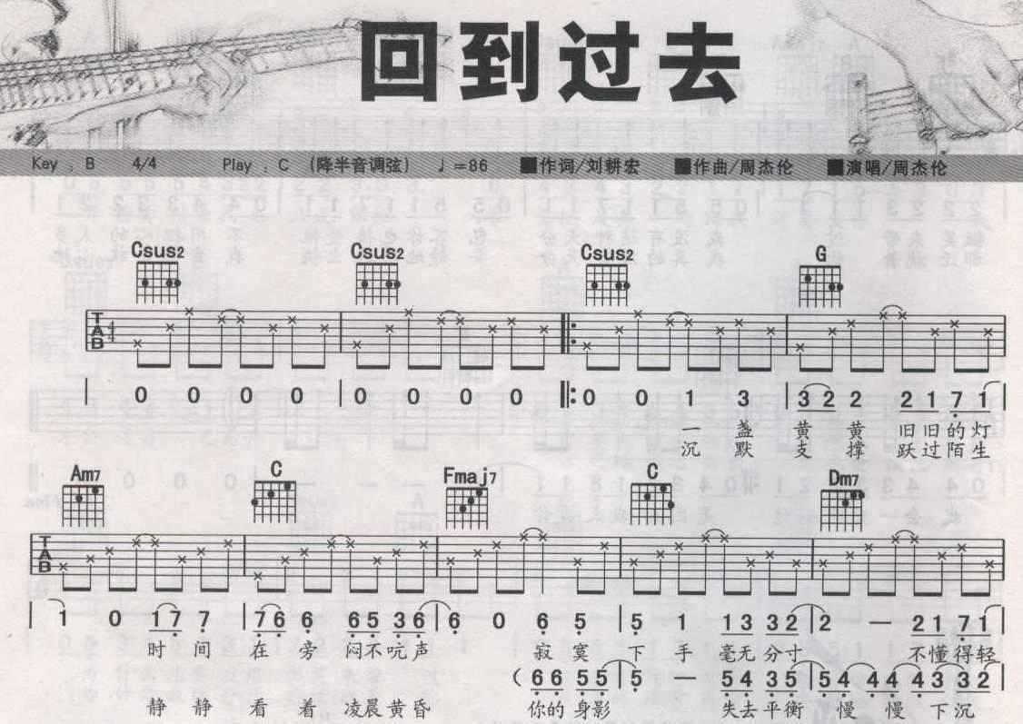 曲谱介绍: 《回到过去版本2》吉他弹唱谱,共有4张高清图谱。