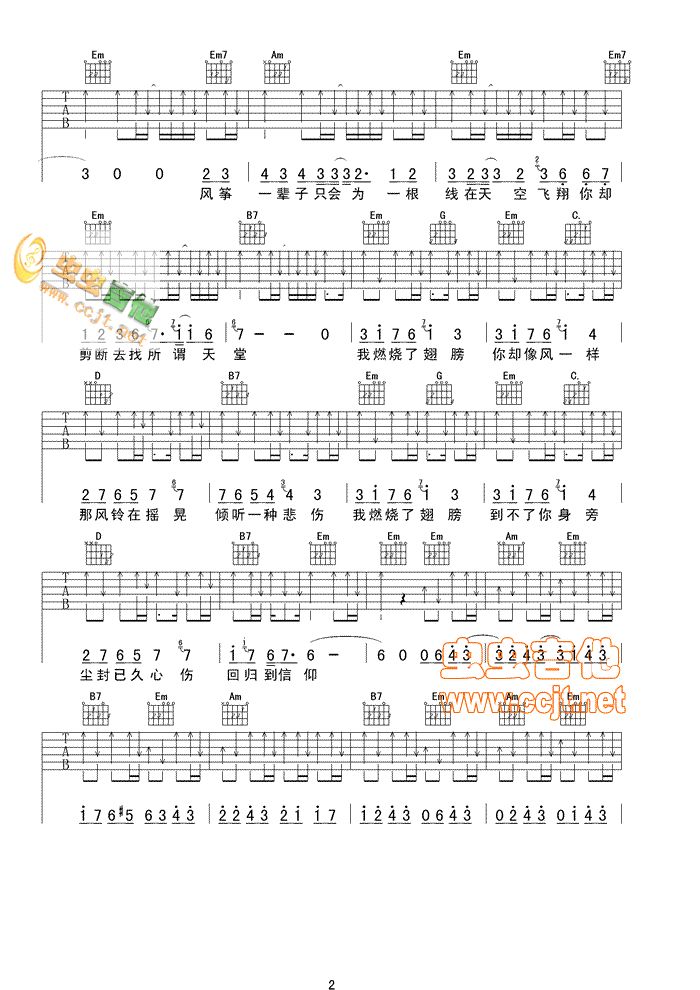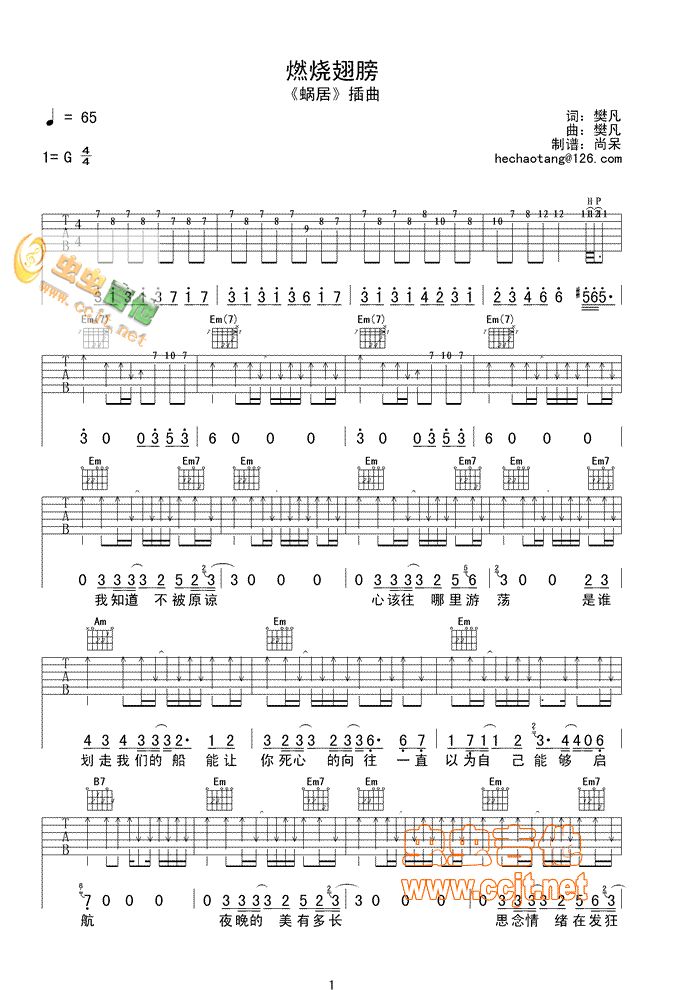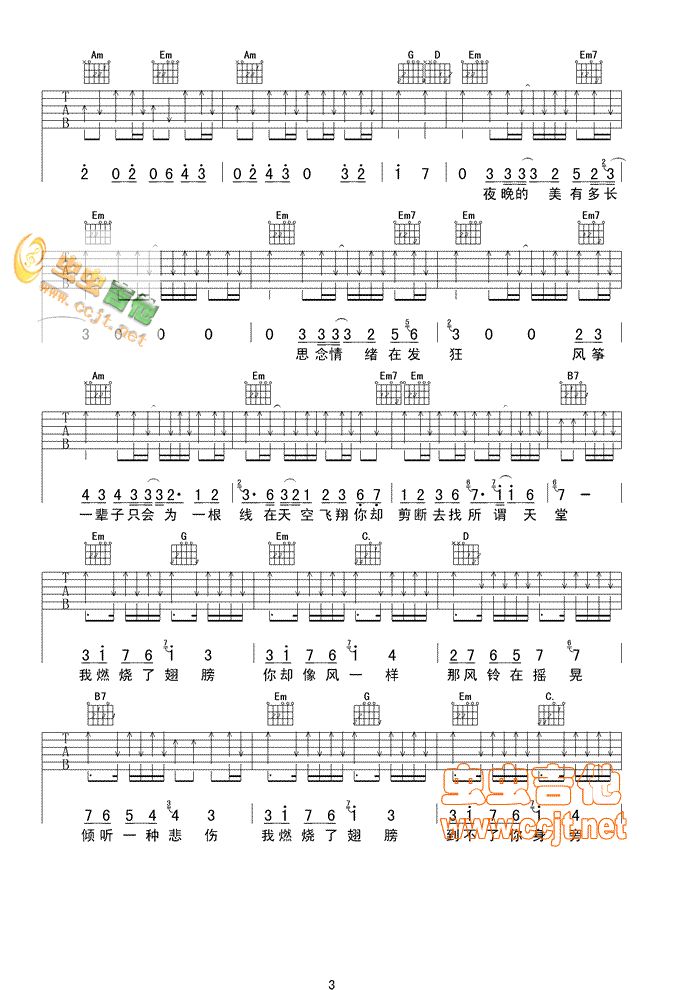 曲谱介绍: 《燃烧翅膀》吉他弹唱谱,共有4张高清图谱。