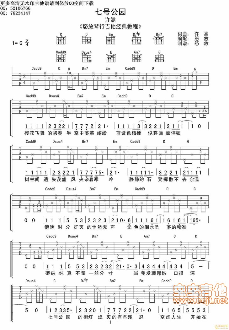 七号公园吉他谱 - 吉他弹唱谱
