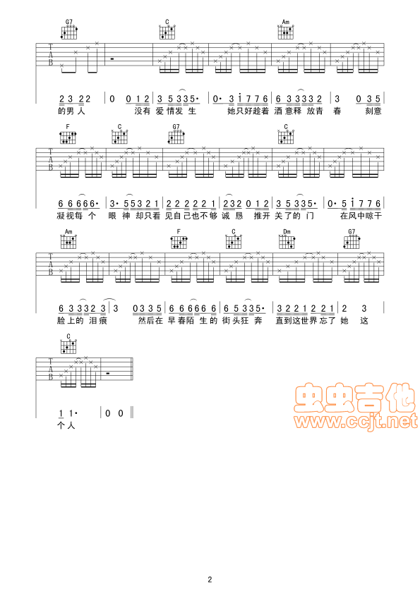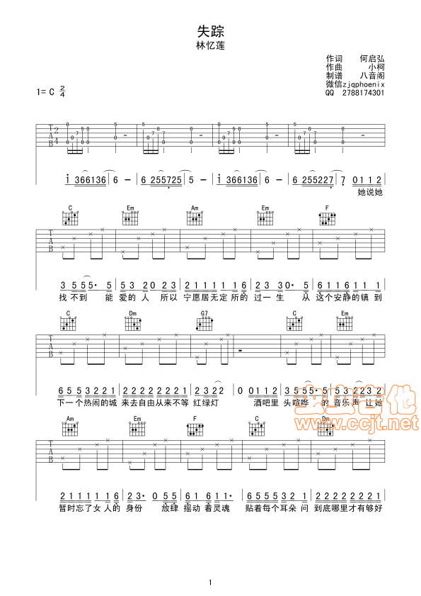 曲谱介绍: 林忆莲《失踪》吉他弹唱谱,共有2张高清图谱,免翻页排版设计。