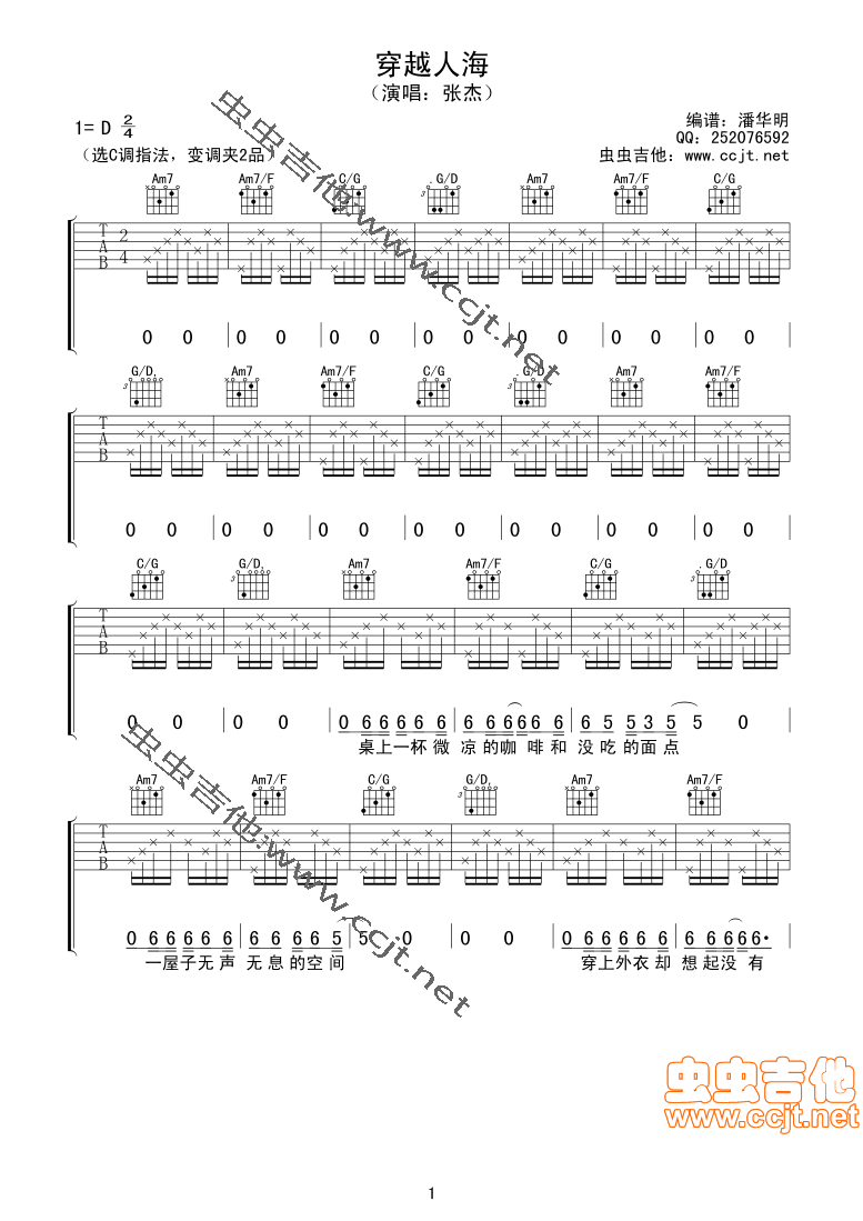 穿越人海吉他谱 - 吉他弹唱谱
