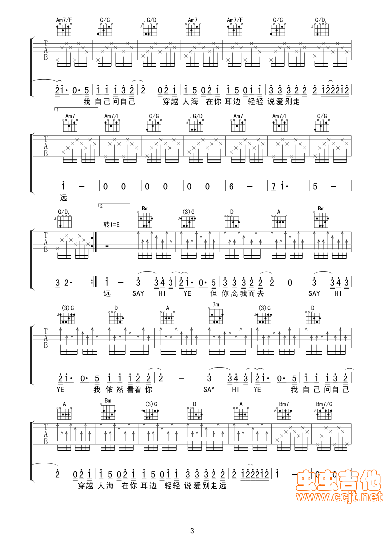 曲谱介绍: 《穿越人海》吉他弹唱谱,共有4张高清图谱。