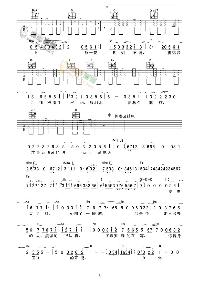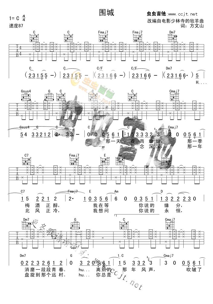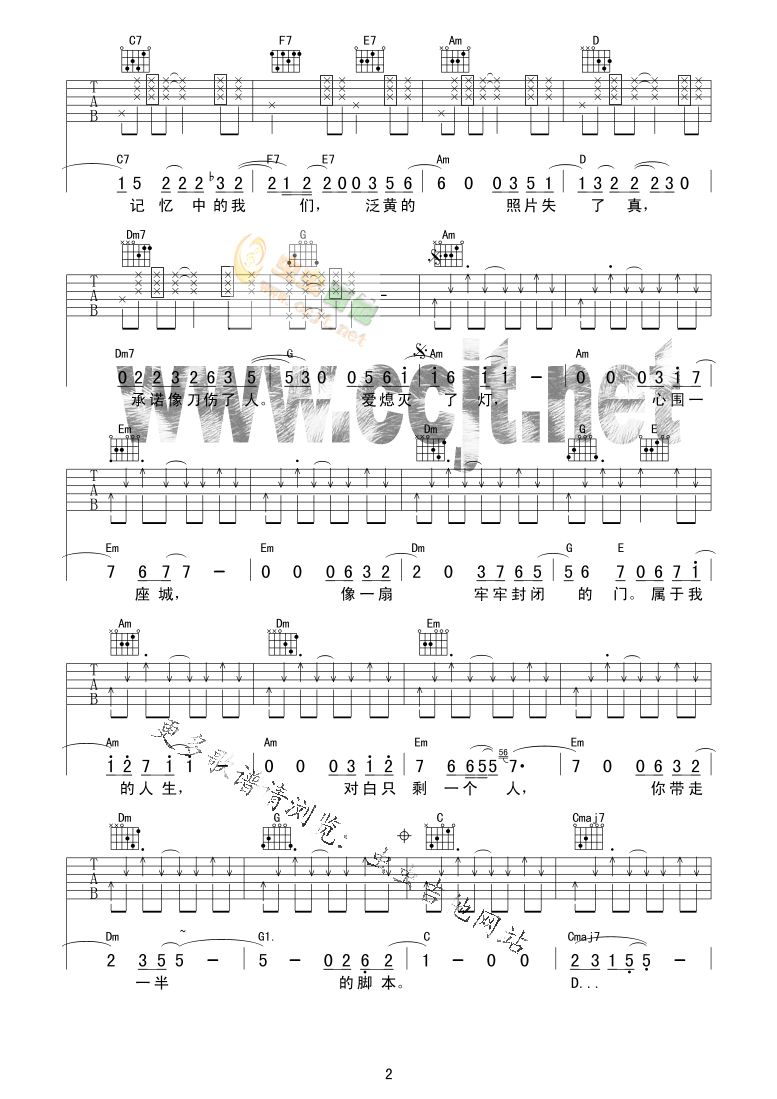曲谱介绍: 《围城》吉他弹唱谱,共有4张高清图谱。