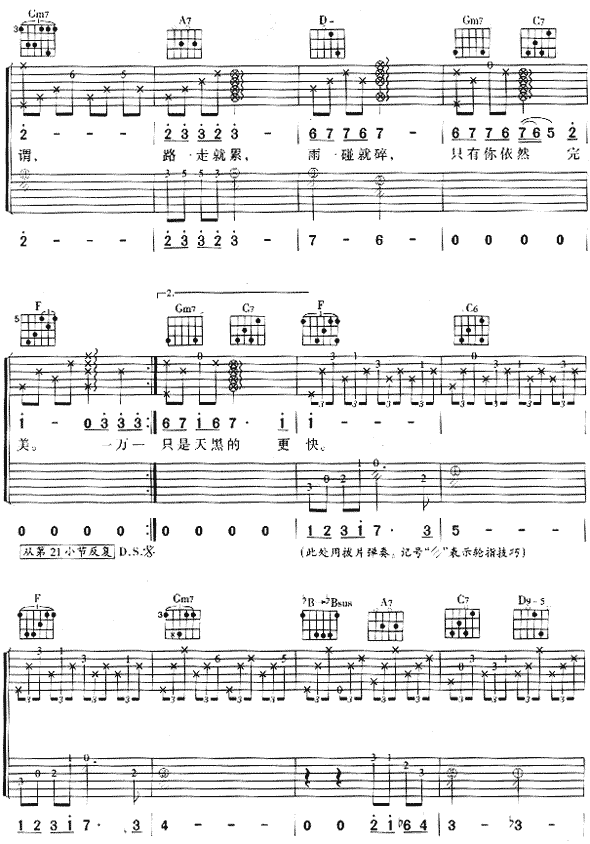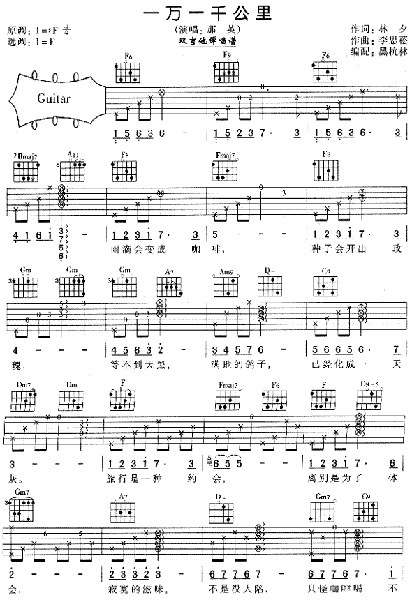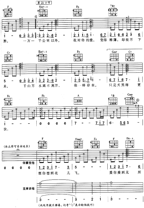 曲谱介绍: 《一万一千公里》吉他弹唱谱,共有4张高清图谱。