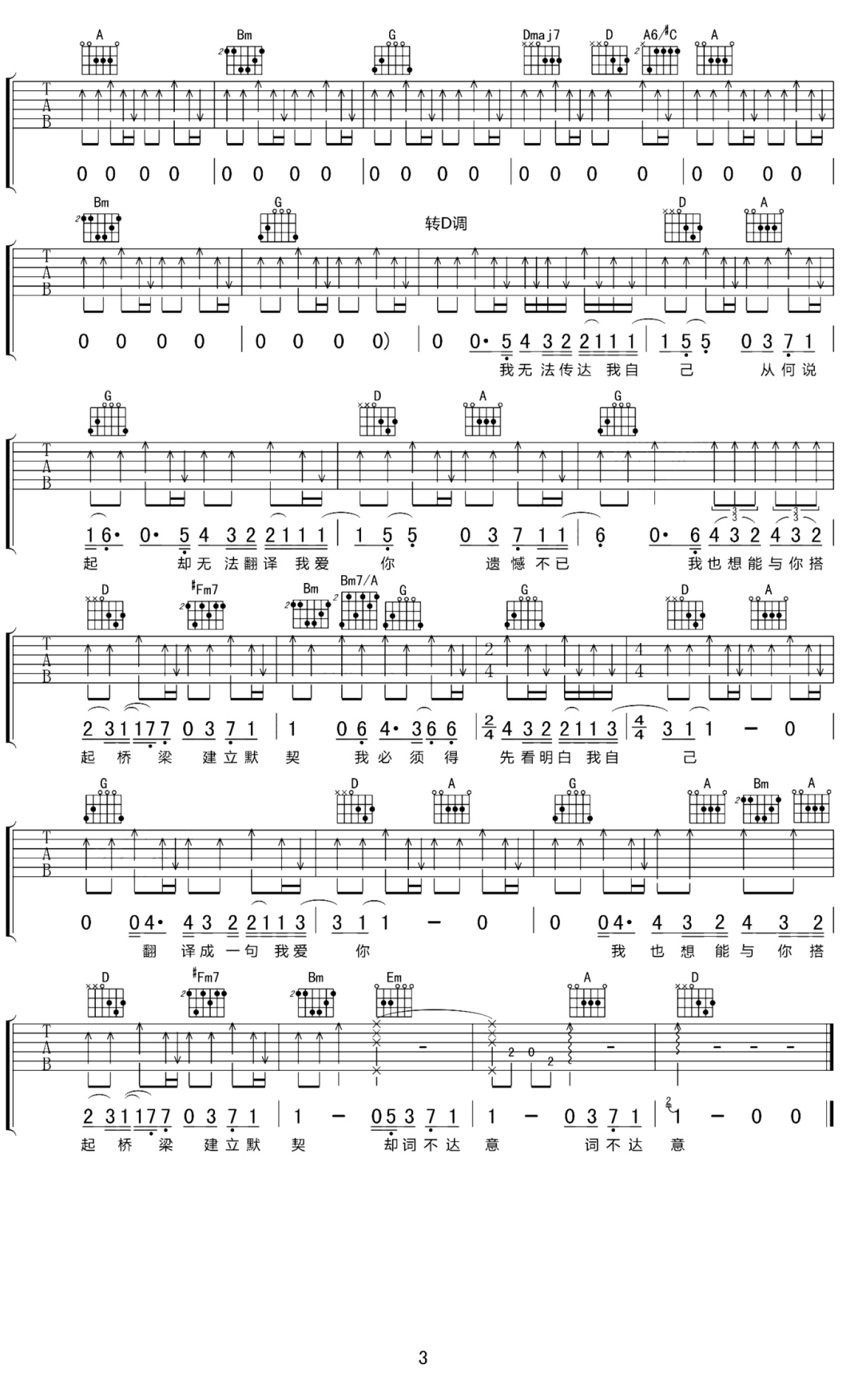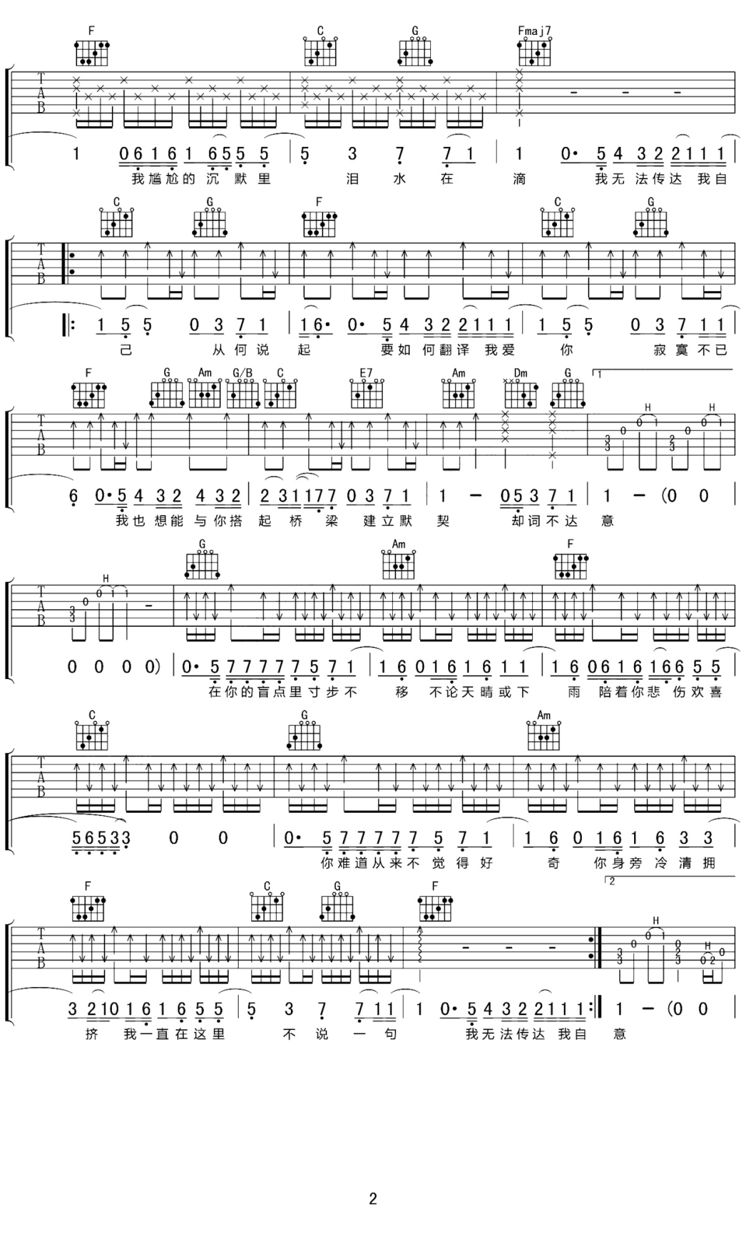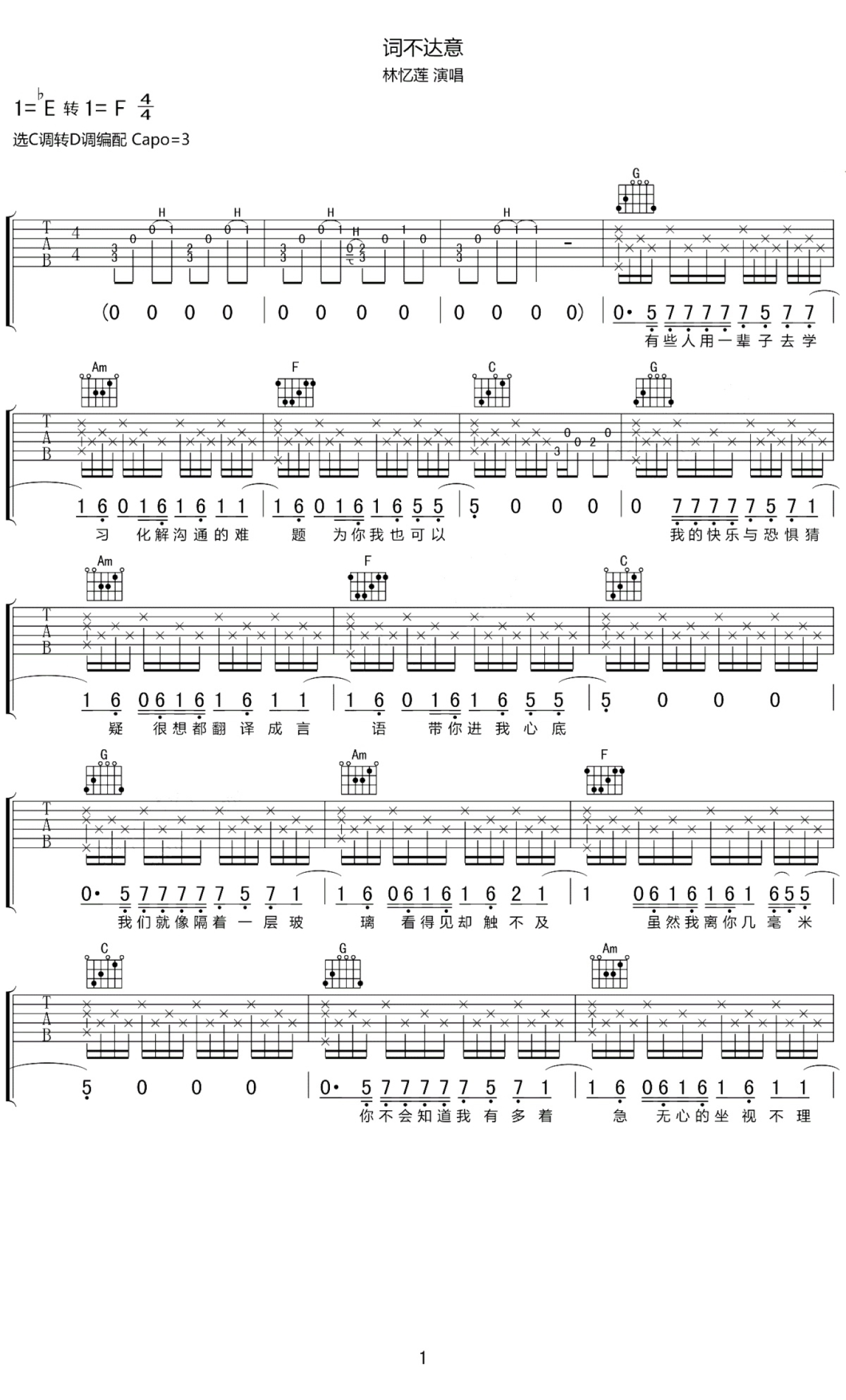 曲谱介绍: 林忆莲《词不达意》吉他谱_C调吉他弹唱谱