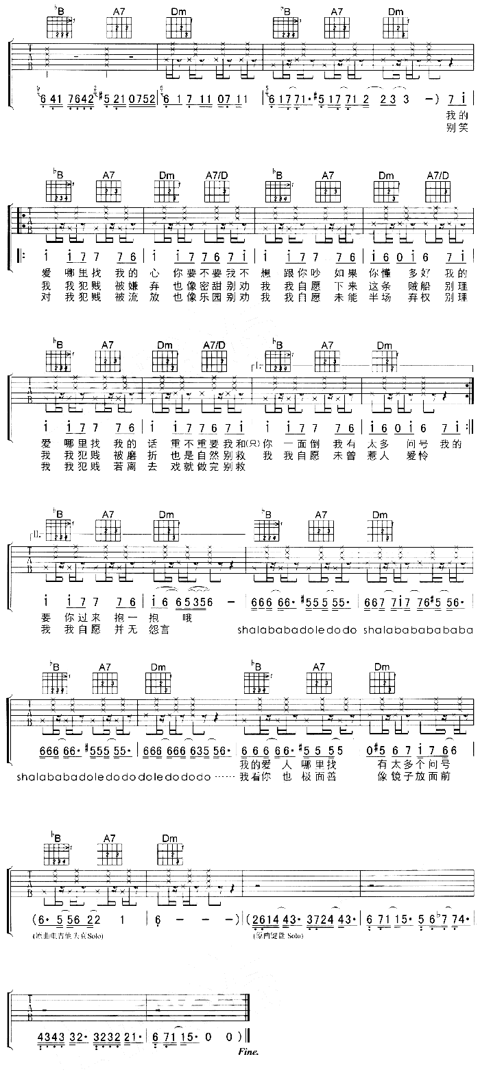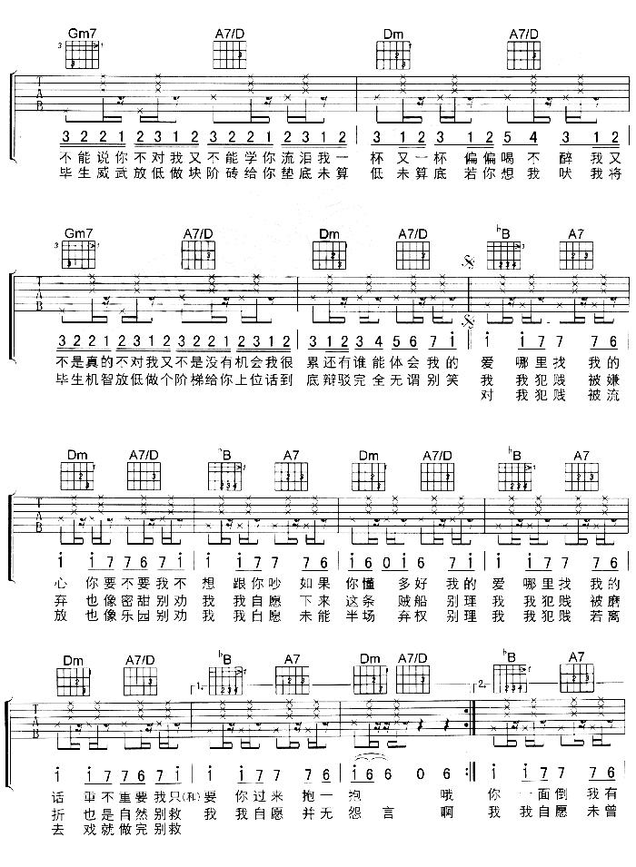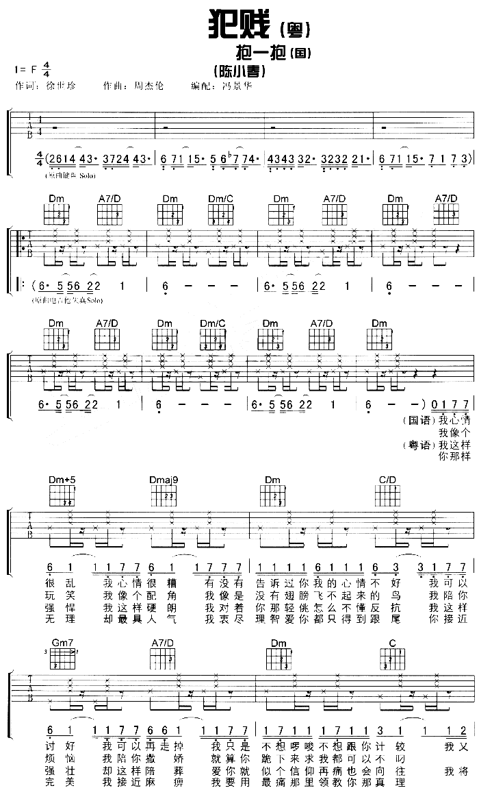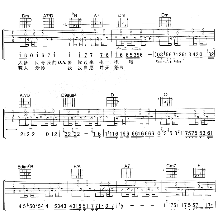 曲谱介绍: 《抱一抱》吉他弹唱谱,共有4张高清图谱。