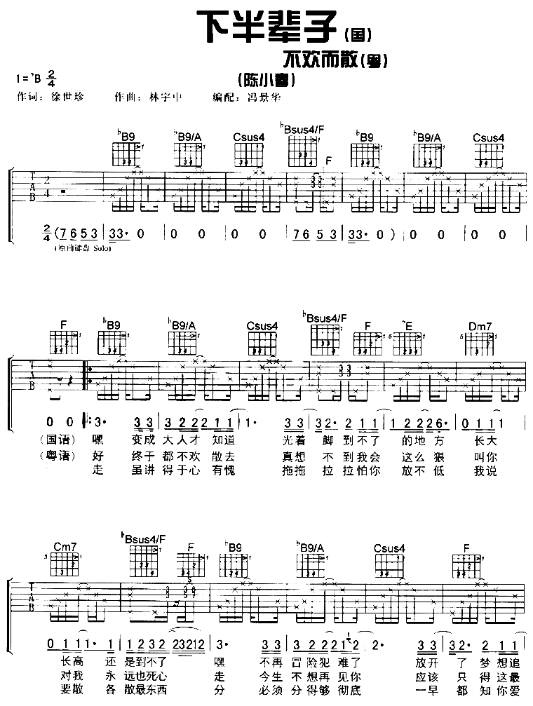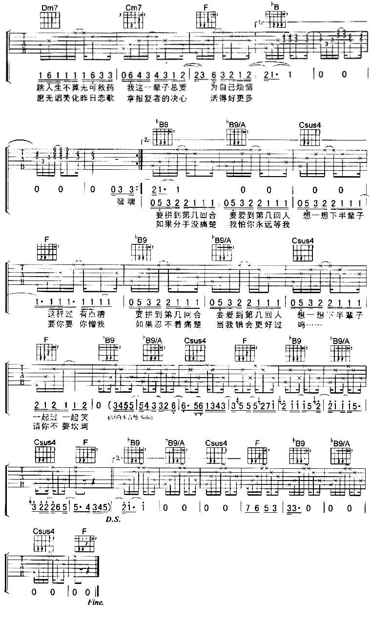 下半辈子吉他谱 - 吉他弹唱谱
