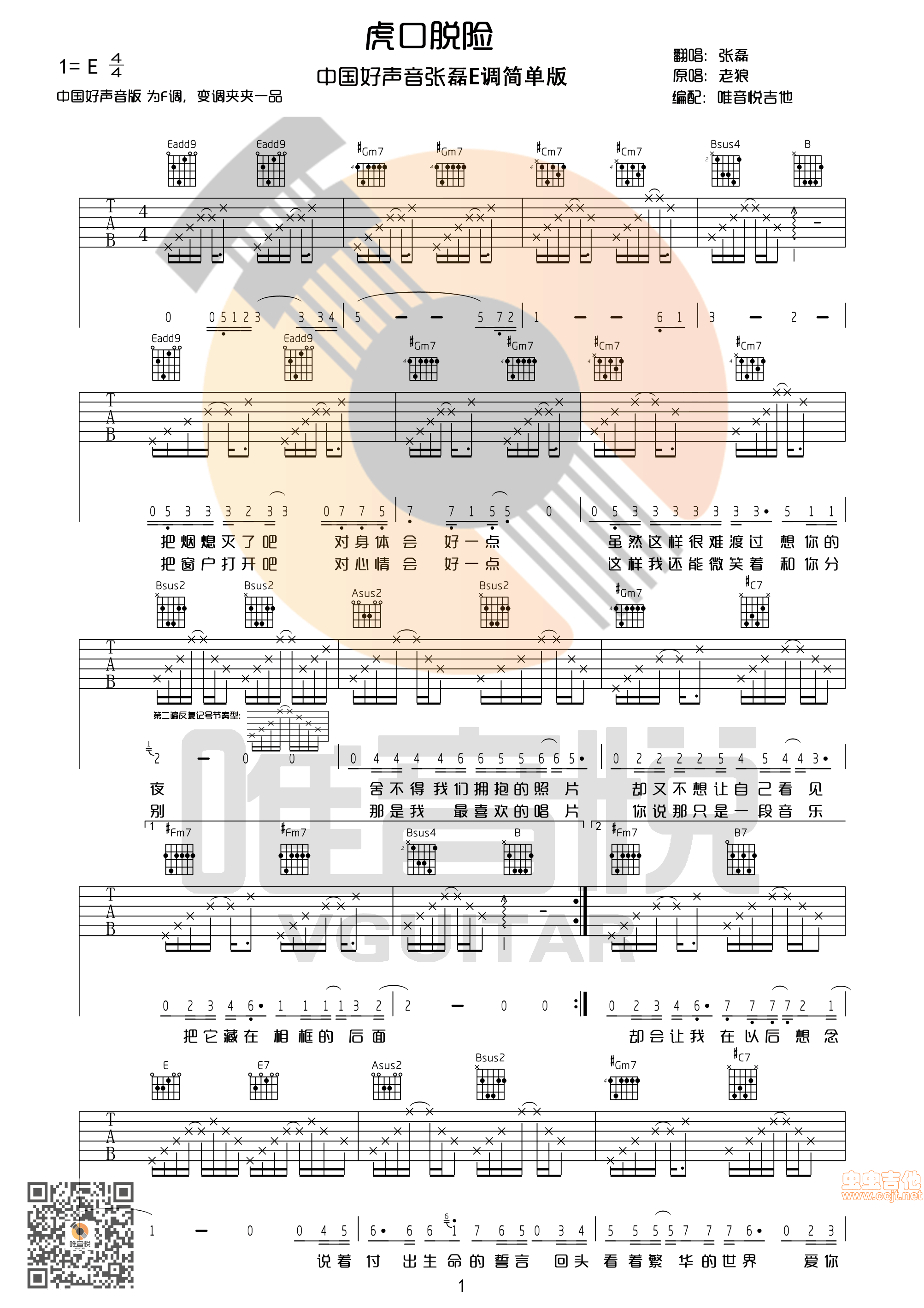 虎口脱险吉他谱 - E调吉他弹唱谱