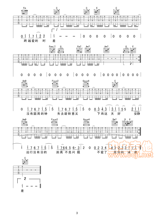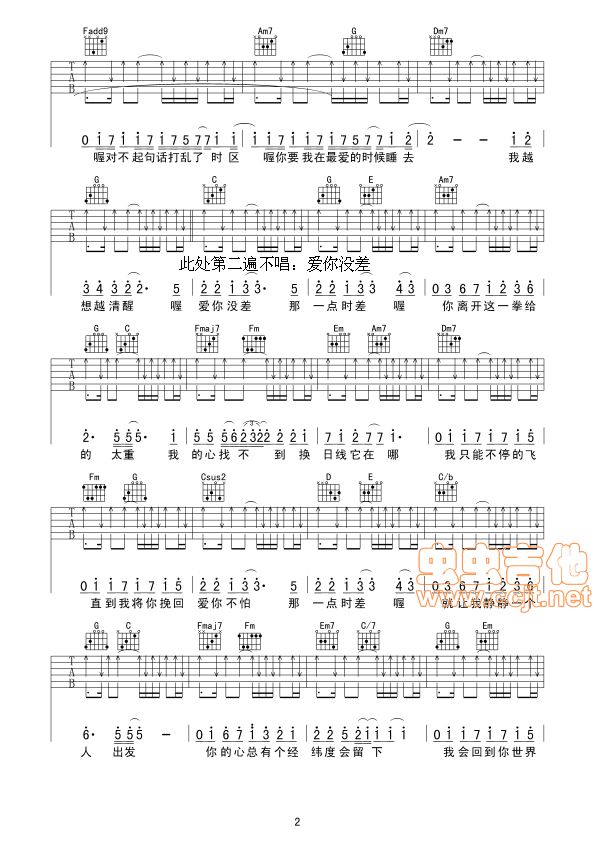 当前位置:琴谱网>吉他弹唱><爱你没差>大二女生版