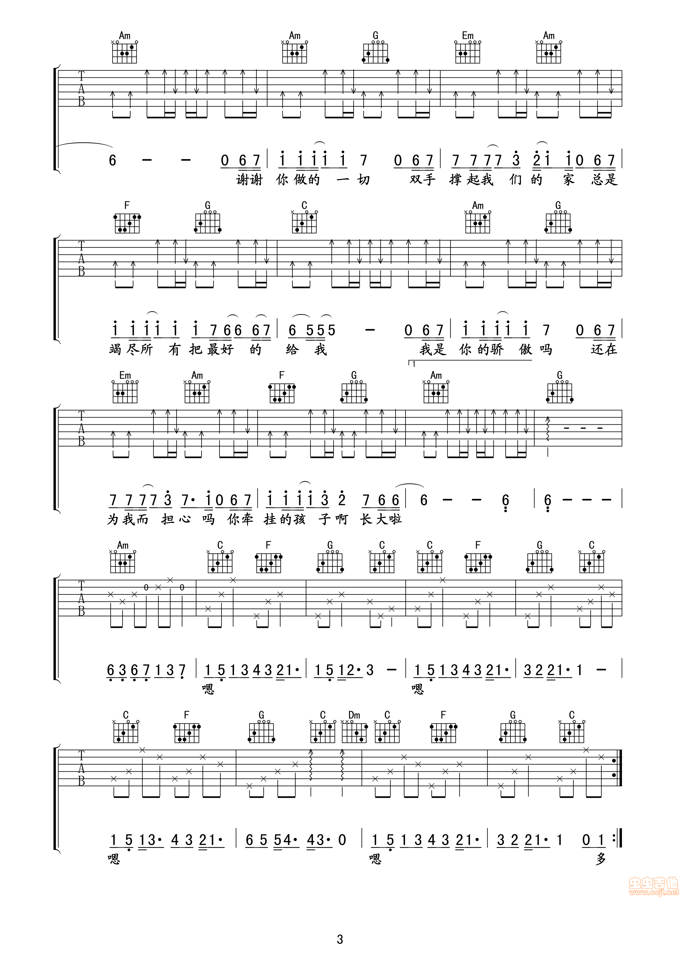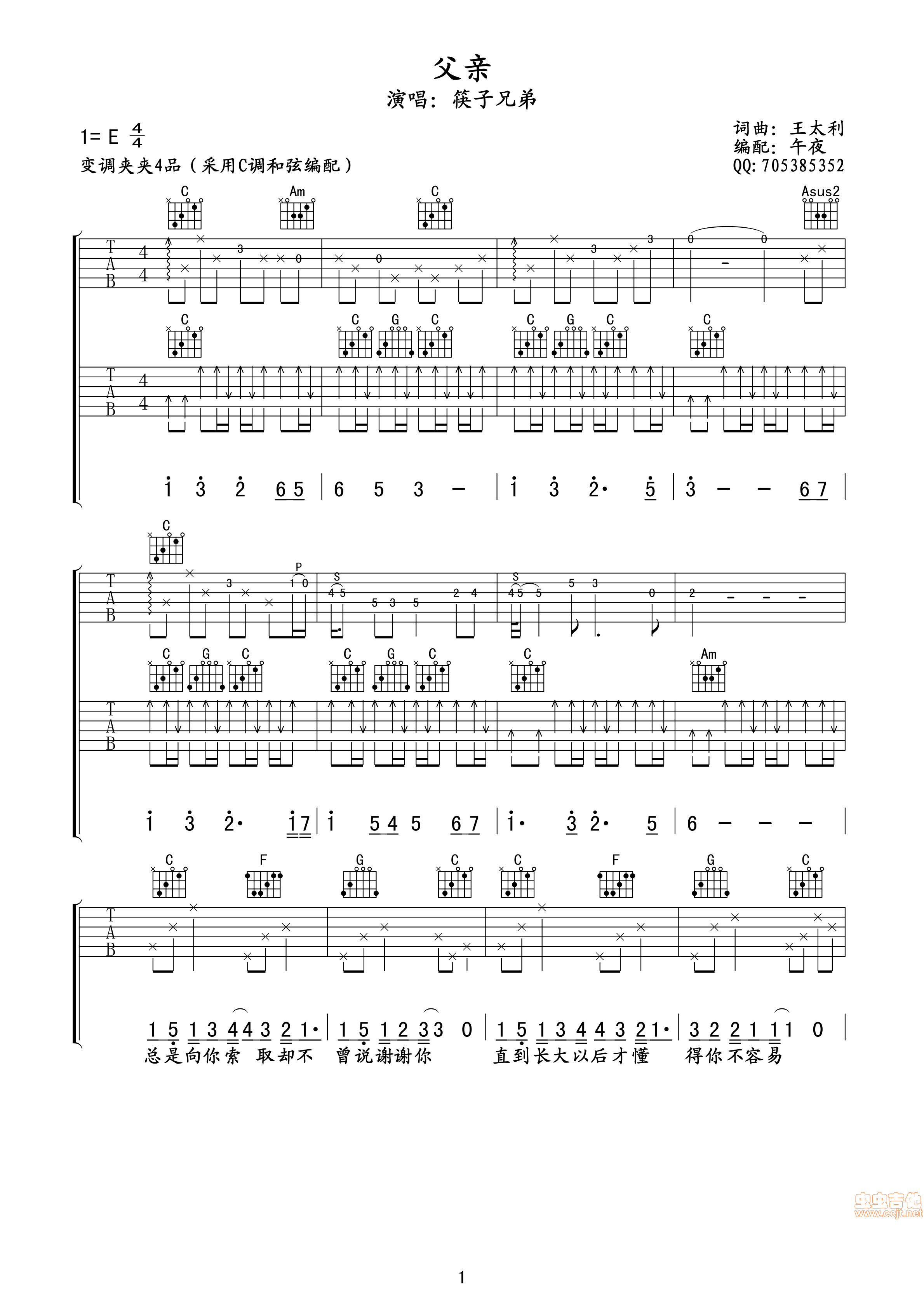 父亲吉他谱 - 吉他弹唱谱