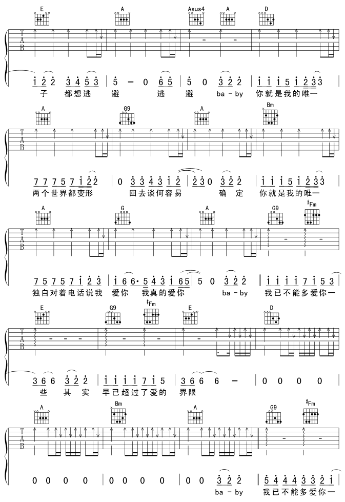 唯一吉他谱 - 吉他弹唱谱