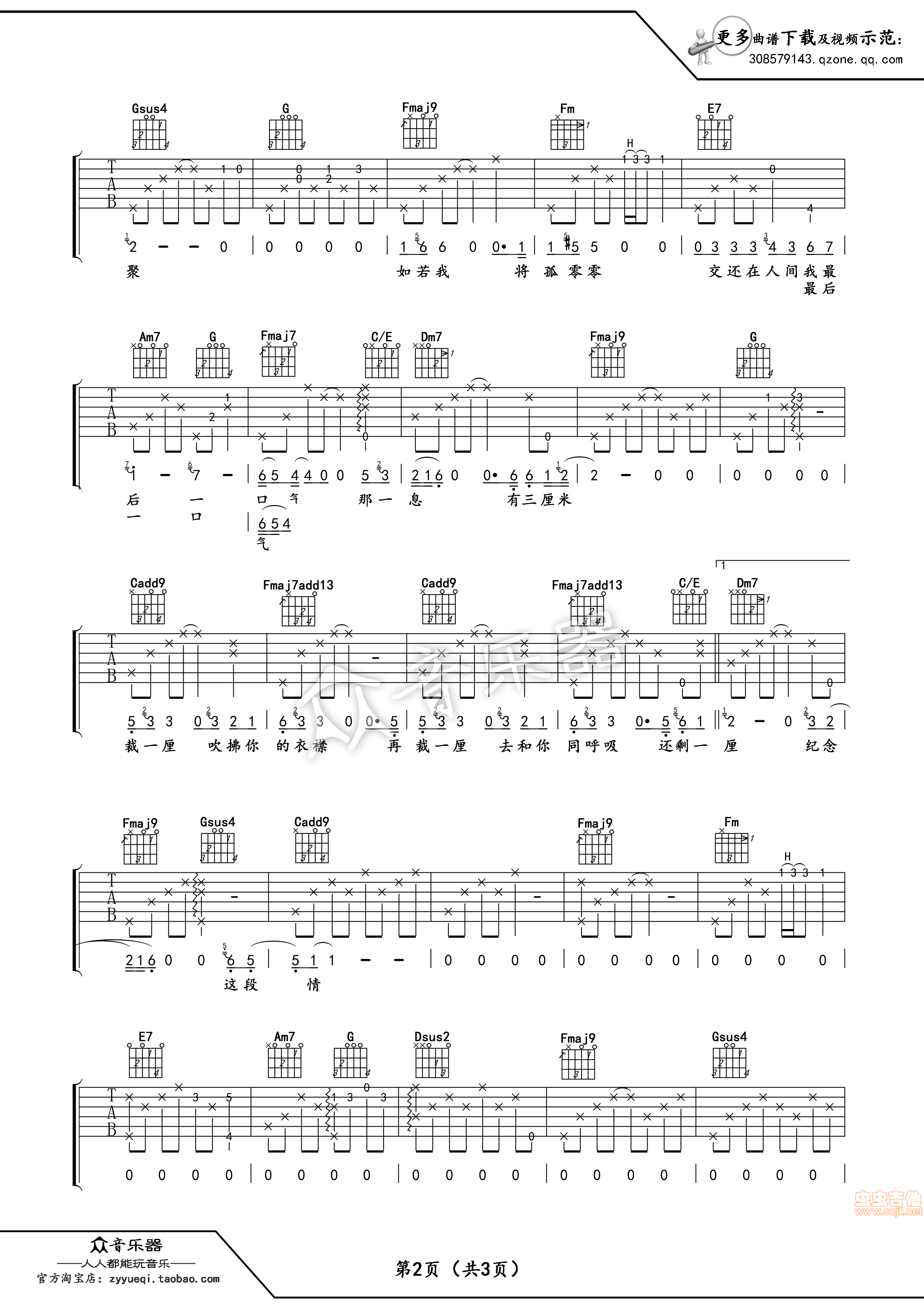 曲谱介绍: 三厘米《三厘米谭维维》吉他弹唱谱,共有3张高清图谱。