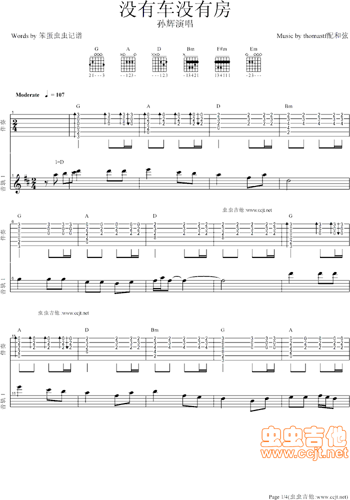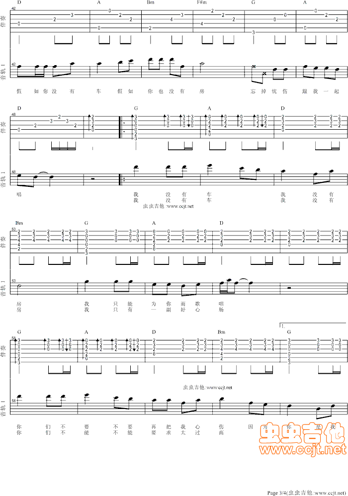 我没有车我没有房吉他谱 - 吉他弹唱谱