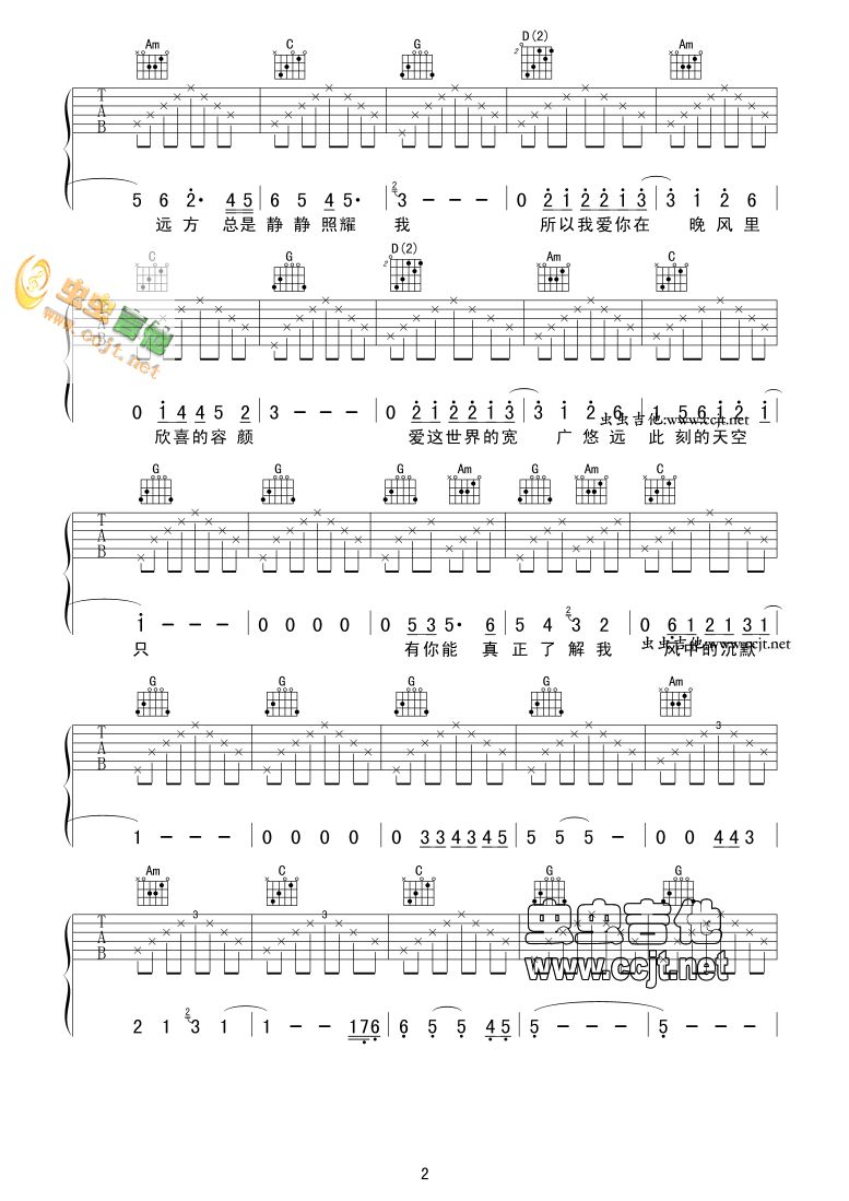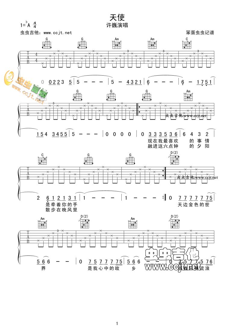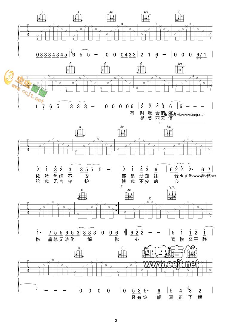 曲谱介绍: 《天使》吉他弹唱谱,共有4张高清图谱。