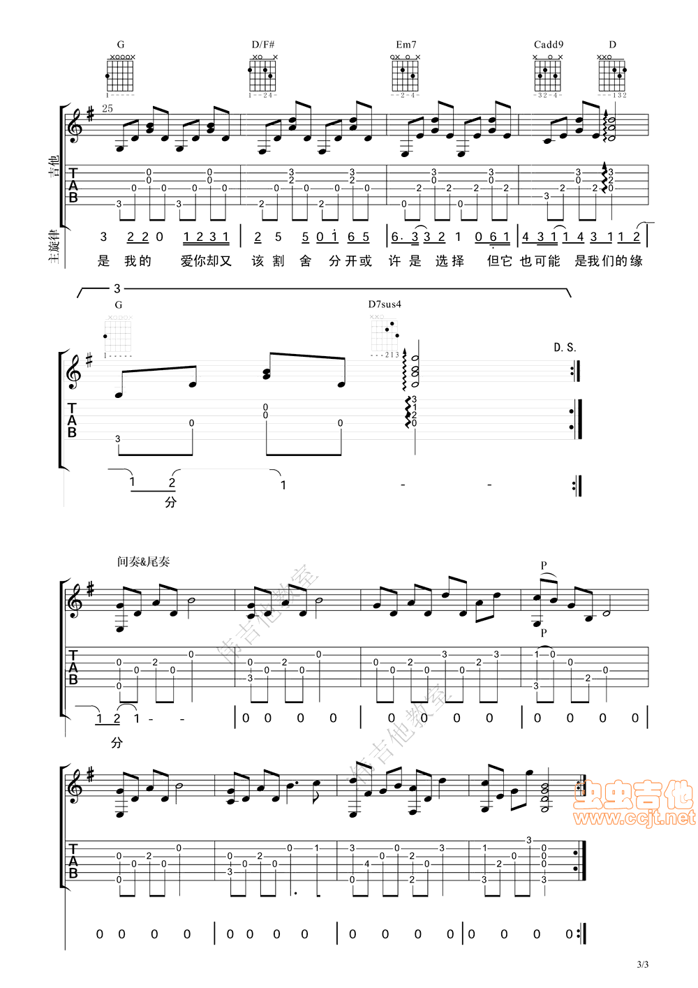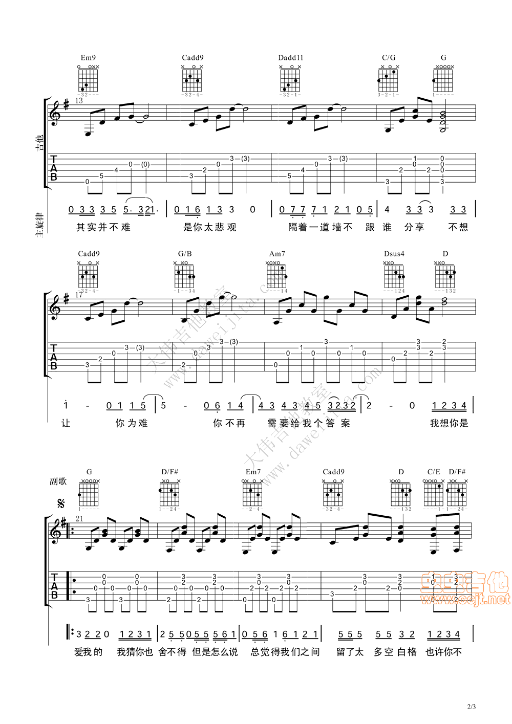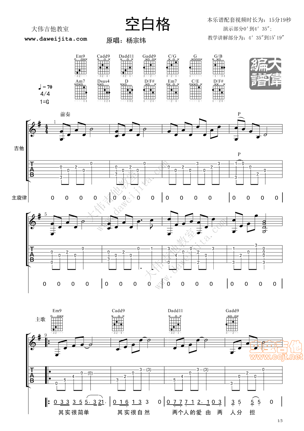 空白格【大伟编吉他谱 - 吉他弹唱谱