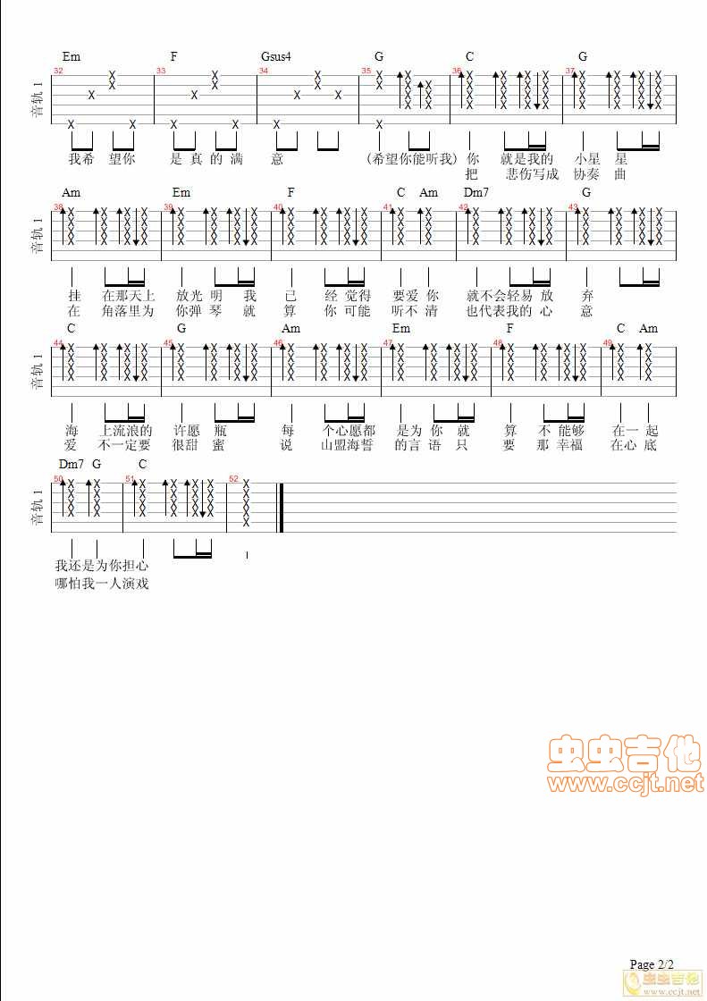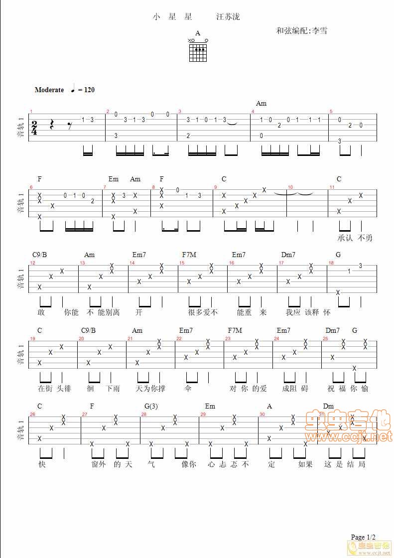小星星2 汪苏泷吉他谱 - 小星星2 - 吉他弹唱谱 - 原版