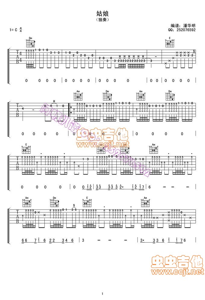 姑娘吉他谱 - 吉他弹唱谱