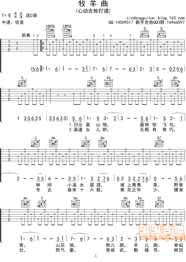 牧羊曲少林寺插曲图片曲吉他谱 - 吉他弹唱谱