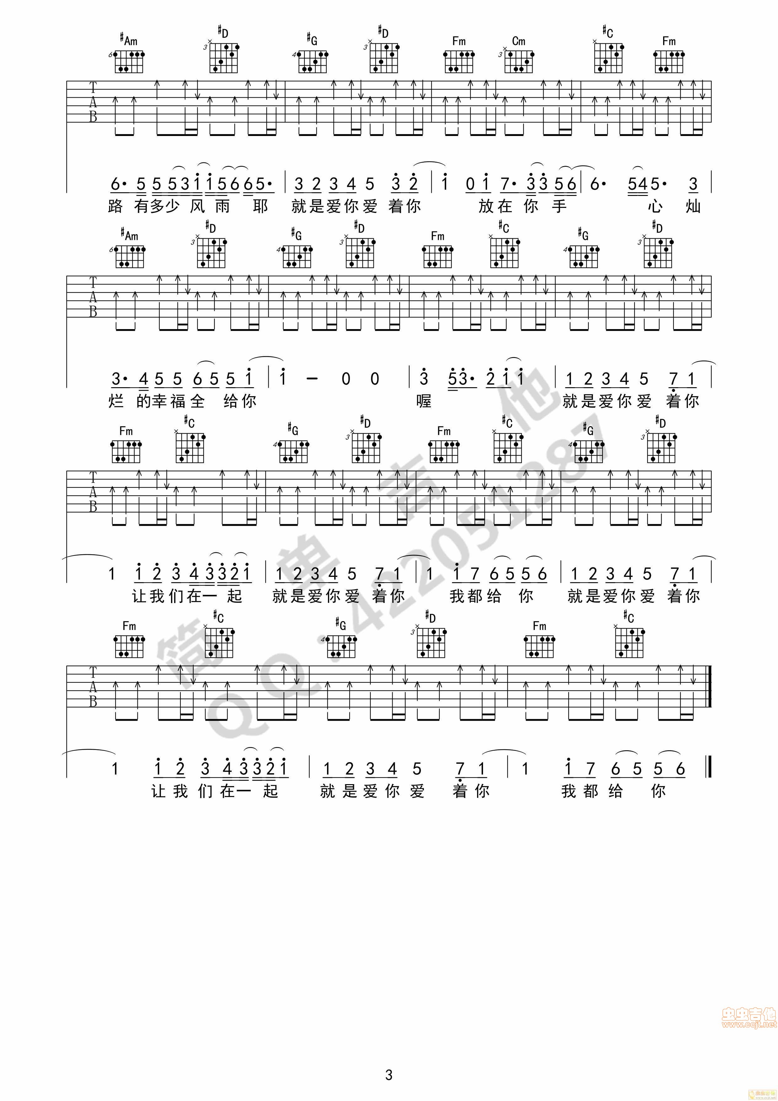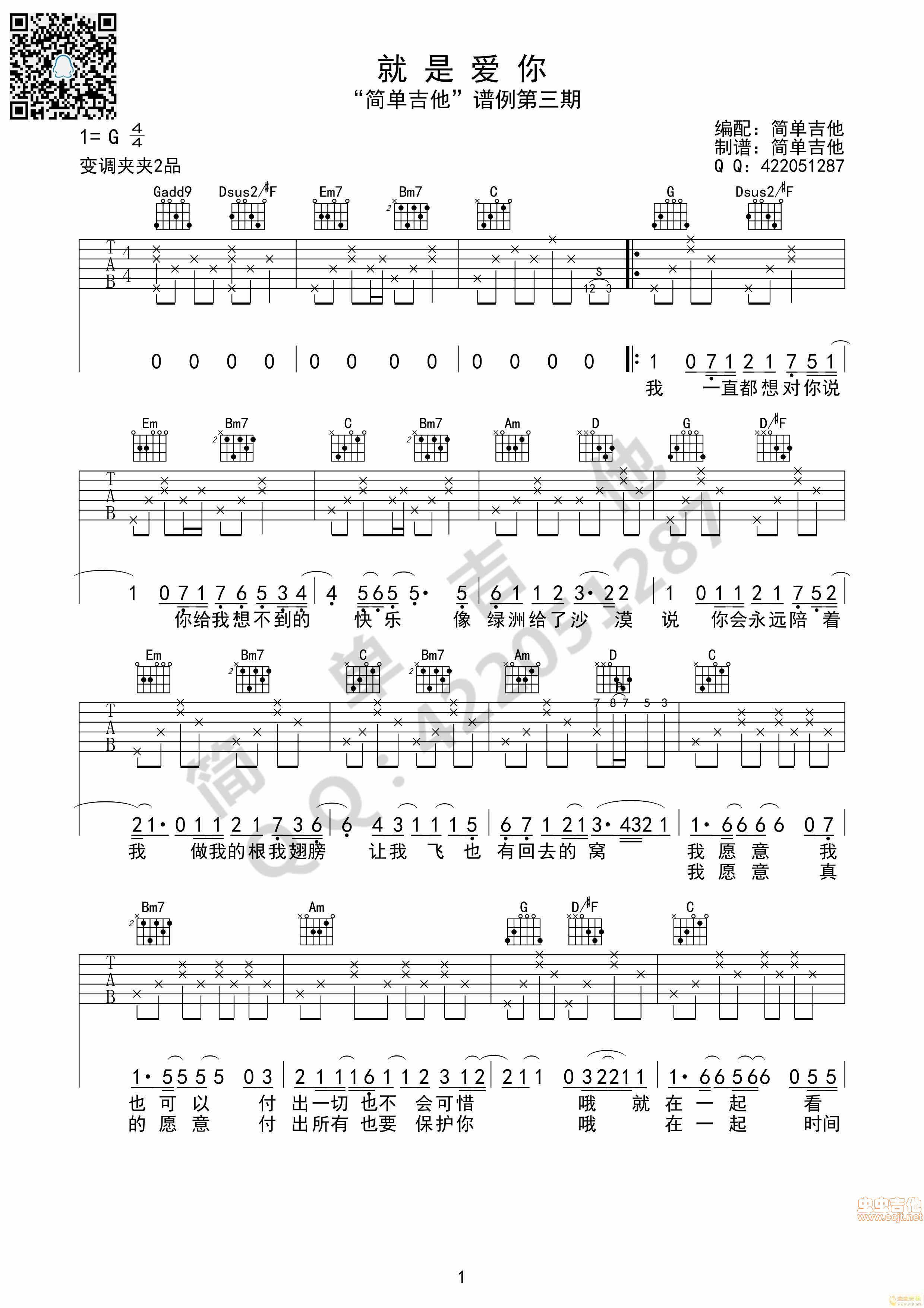 曲谱介绍: 《就是爱你》吉他弹唱谱,共有3张高清图谱。