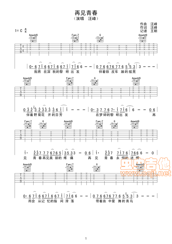 再见青春吉他谱 - 再见青春 - 吉他弹唱谱