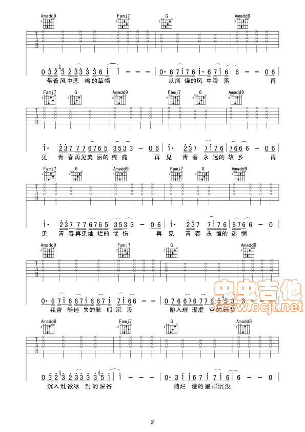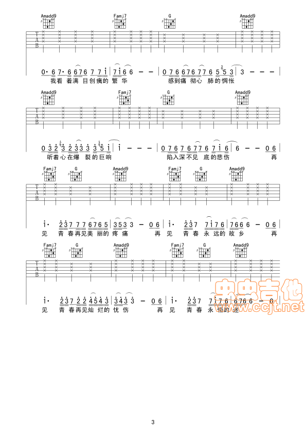 曲谱介绍: 再见青春《再见青春》吉他弹唱谱,共有3张高清图谱。