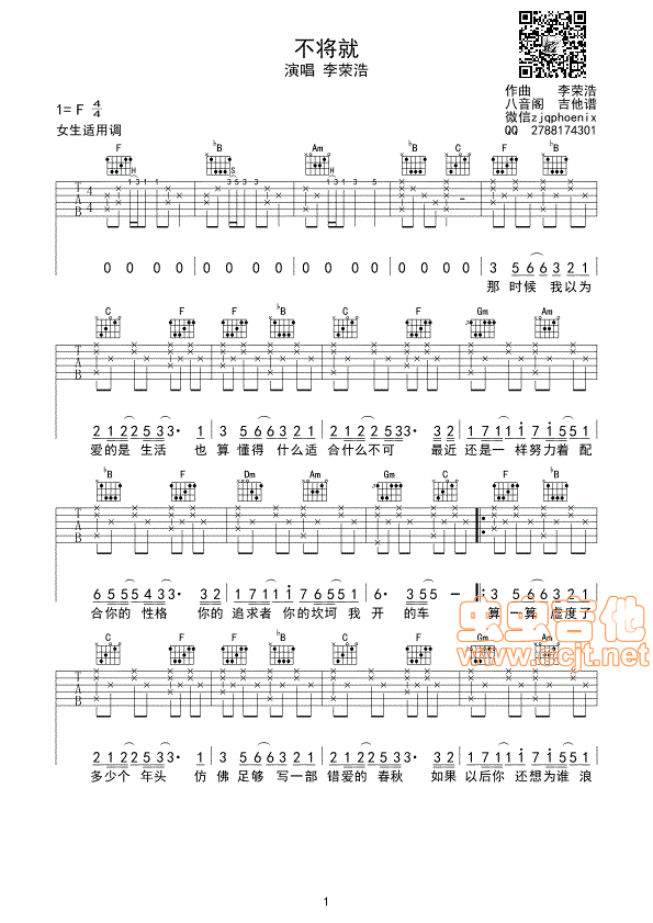 不将就吉他谱 - 李荣浩 - 吉他弹唱谱