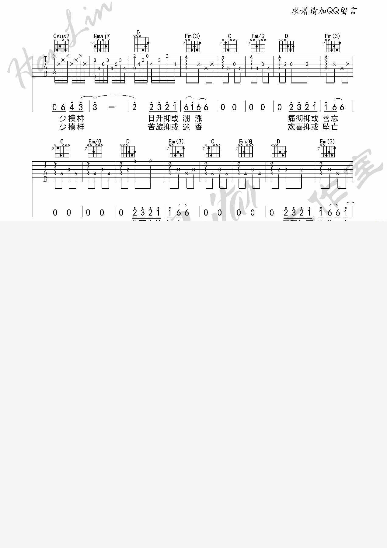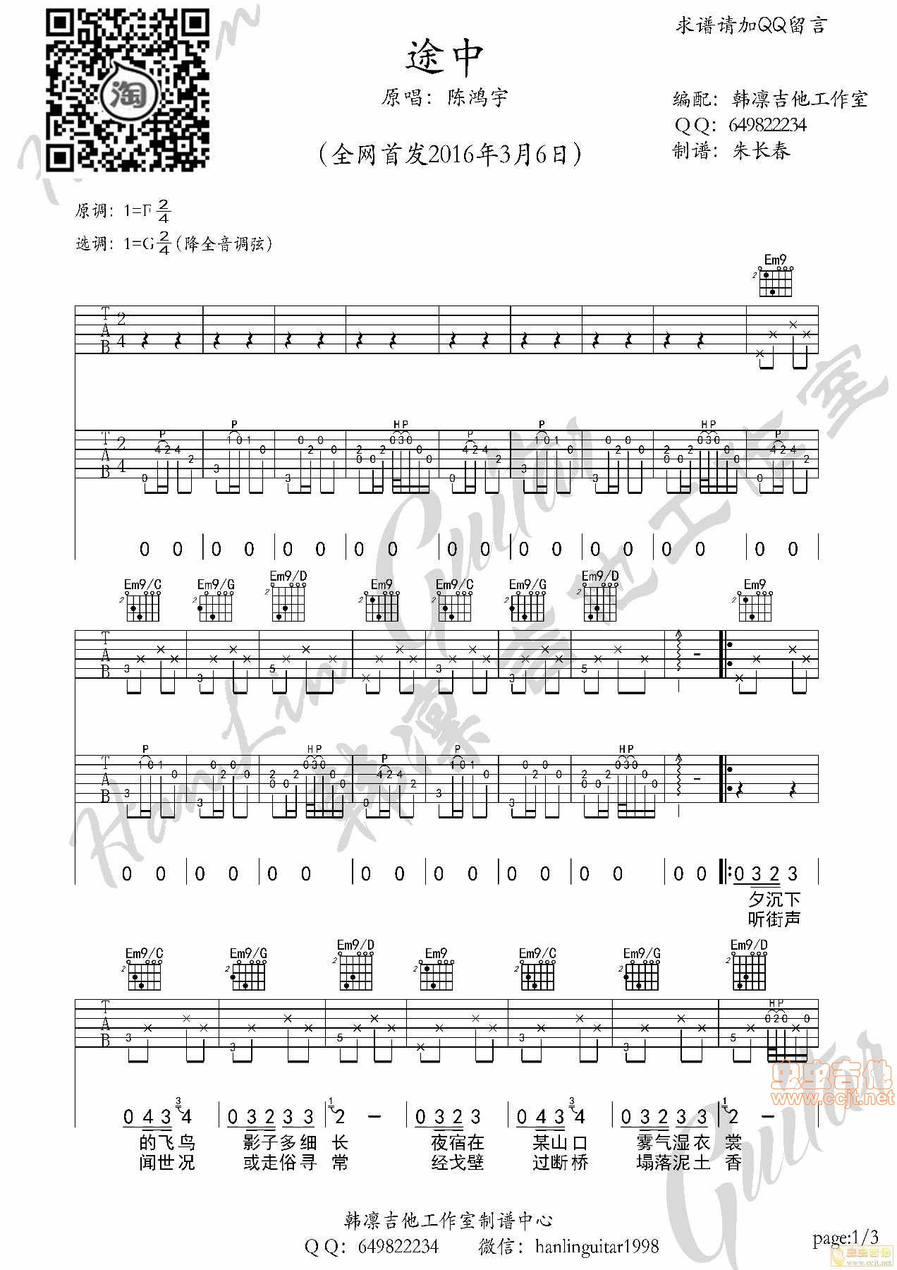 曲谱介绍: 途中《途中陈鸿宇》吉他弹唱谱,共有3张高清图谱。