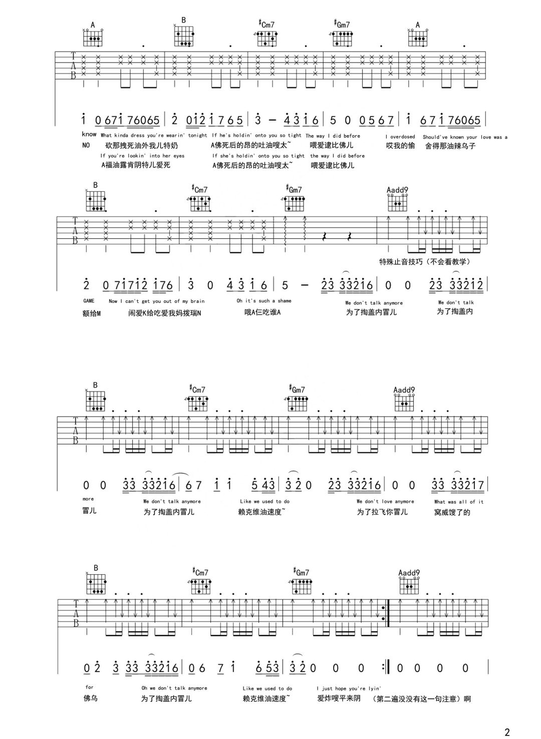 当前位置:琴谱网>吉他弹唱>We Don't Talk Anymore