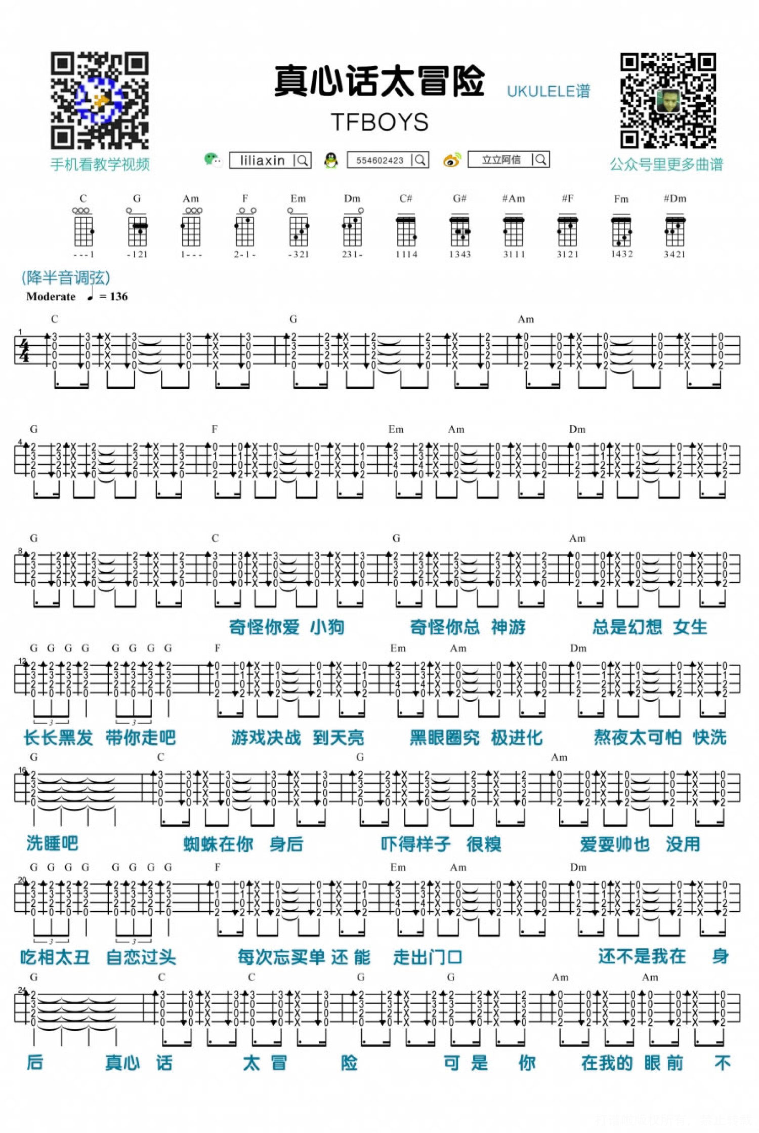 真心话太冒险尤克里里谱 - TFBOYS