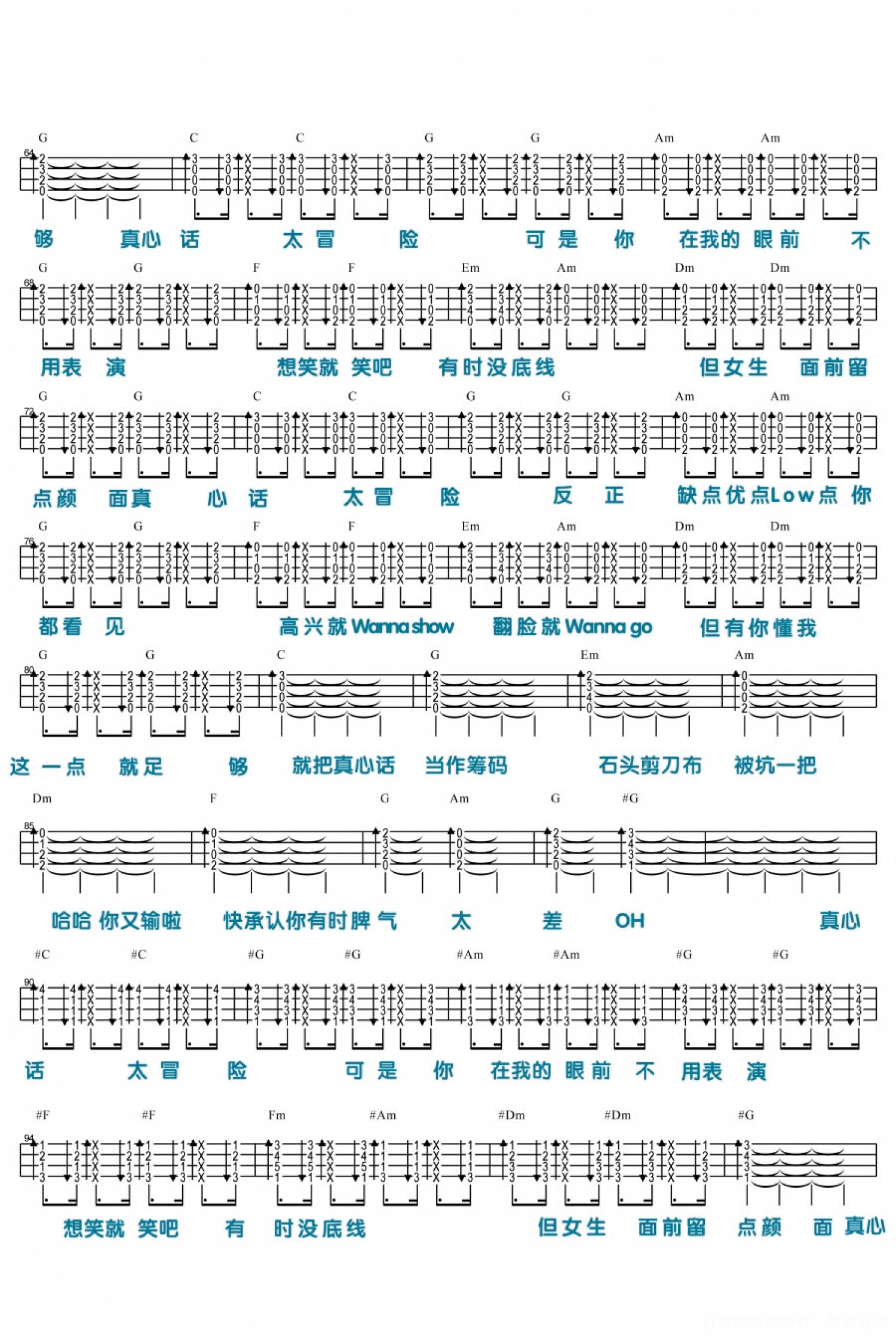 当前位置:琴谱网>尤克里里>真心话太冒险