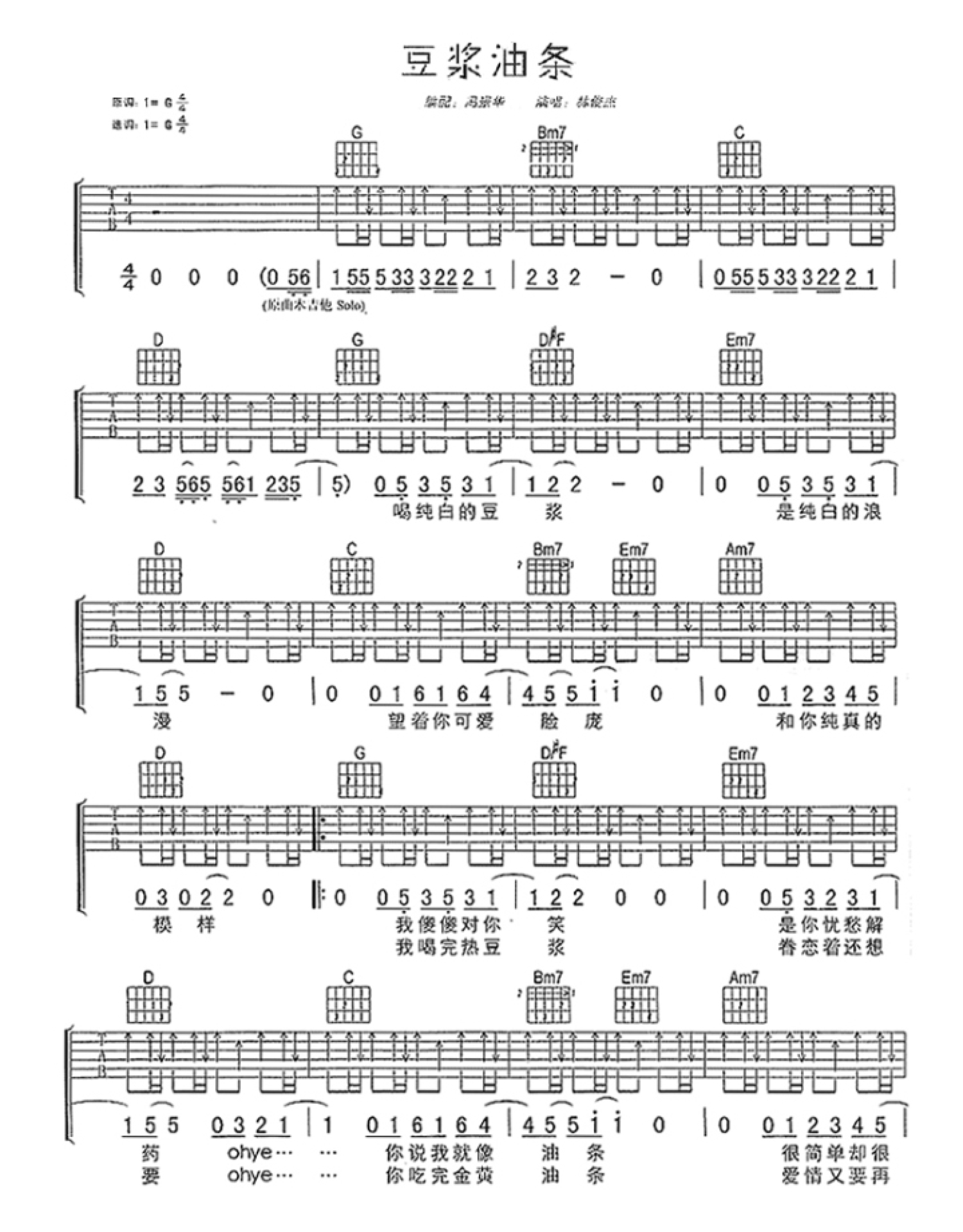 豆浆油条吉他谱 - 林俊杰 - G调吉他弹唱谱